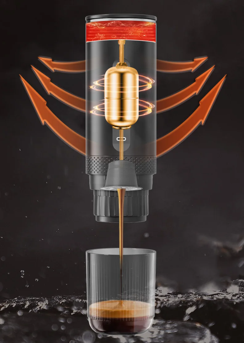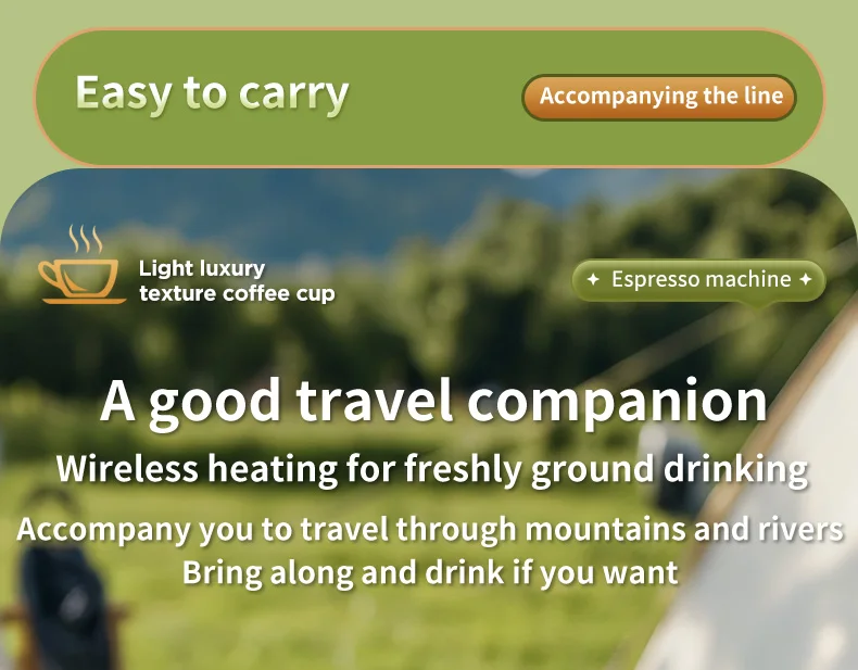 4. Battery wireless heating, no need to bring hot water, enjoy a rich espresso coffee anytime, anywhere Constant temperature extraction