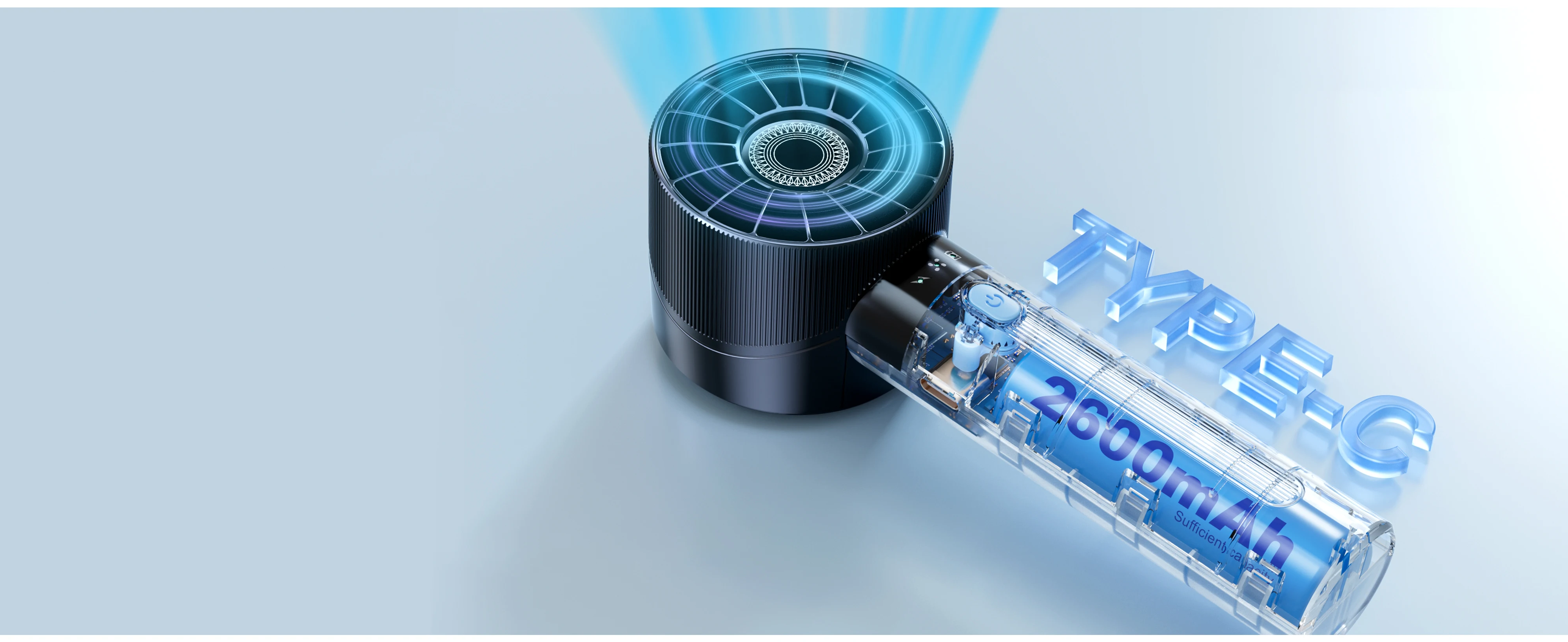 【Technology Design - Cold Wind Delivery】 The personal fan utilizes a turbine structure with a powerful motor to quickly compress and cool down the hot air that is sucked in, turning it into the cold air that blows out. This can quickly cool you down in hot weather. The body of this turbo fan is made with advanced technology, giving it a metal-like texture. Its smooth cylindrical design provides a comfortable and cool feeling.