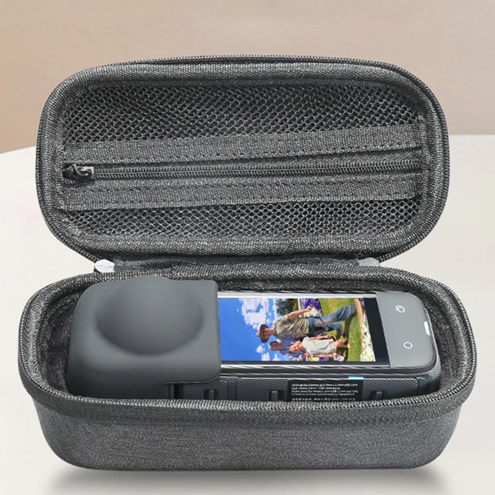 Features: 1. Special design: This portable carrying case adopts 1:1 real machine mold and fits the camera body perfectly. Storage bag specially designed compatible with Insta360 X4 to protect the camera from scratches, dust and wear. (This storage bag supports the use of the camera with a silicone lens cover) 2. Comprehensive protection: This small size hard shell bag is made of high-quality EVA+ canvas material, which effectively resists external impacts and scratches from sharp objects. It is pressure-resistant, anti-fall, wear-resistant and scratch-resistant, better protecting your camera lens and screen. Soft fleece lining protects your camera from bumps, scratches, and more. 3. High-quality details: This travel storage case adopts traditional sewing technology, with neat lines and tight stitching, showing its ingenuity; double zipper design, after repeated tests, can be opened and closed smoothly, keeping the storage box tightly closed compatible with Insta360 X4 Security. 4. Lightweight and Portable: This portable storage bag is small and lightweight to easily store in a backpack or suitcase. Recommended for travel and home storage, very convenient to carry. Designed with a hand strap, it can be hung on your bag or held in your hand, making it more convenient and safer to carry when you go out. 5. Satisfaction Guarantee: We strive to provide each customer with the highest standard of customer service to ensure you have a pleasant shopping experience. If you have any issues, inquiries or need assistance, please feel free to contact us directly. Specification: Origin: Mainland China Type: 360° Video Camera Bag Color: dark gray Material: EVA + flannel Features: Supports camera use with silicone lens case, shock-absorbing and anti-scratch, portable hand strap, daily protection Applicable models: compatible with Insta360 X4 8K HD quality panoramic action camera Size: 160.00x81.00x66.00mm/6.3x3.19x2.6inch Weight: 120g Note: This product is just a storage bag and does not includeaction camera and its accessories This storage bag supports the use of cameras with silicone lens covers. Due to the different monitor and light effect, the actual color of the item might be slightly different from the color showed on the pictures. Thank you! Please allow 1-2cm measuring deviation due to manual measurement. ![]()