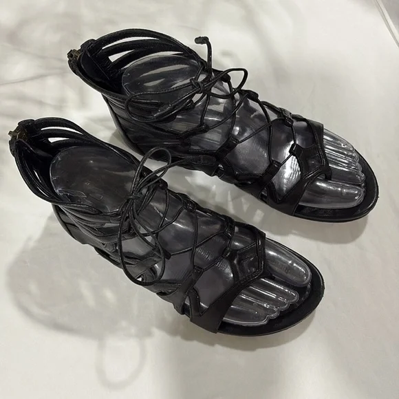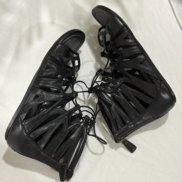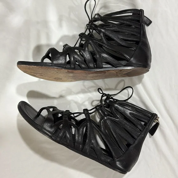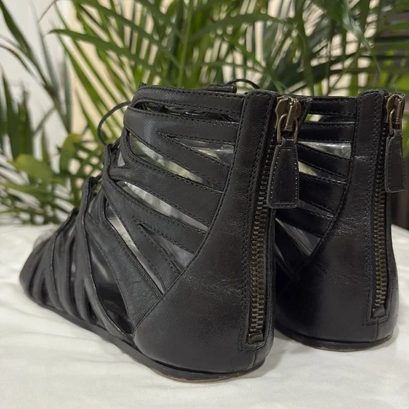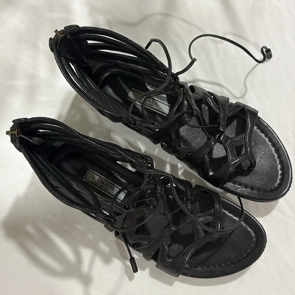 🔥GORGEOUS🔥PRADA Leather Gladiator SandalsMade in ItalyLeather UpperLeather OutsoleLace up ClosureCut Out DetailingWoman’s size 7In Excellent preowned condition with some signs of gentle use/wear may show dust , minimal scuff mostly on bottom solePlease review photos for condition and description details. SAME OR NEXT DAY SHIPPING EXCEPT SUNDAYS AND HOLIDAYS.