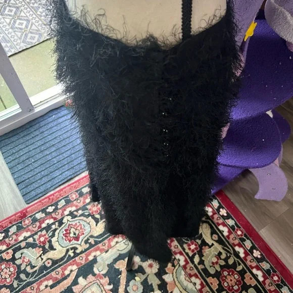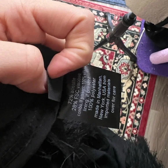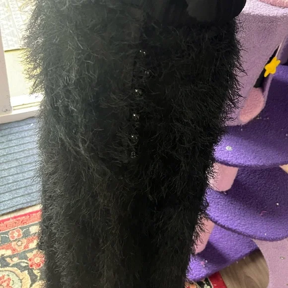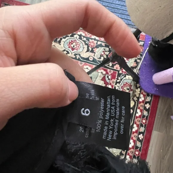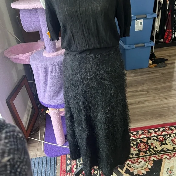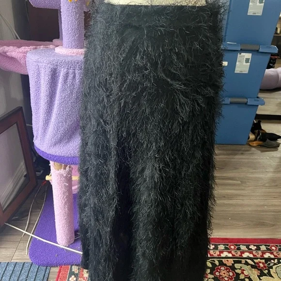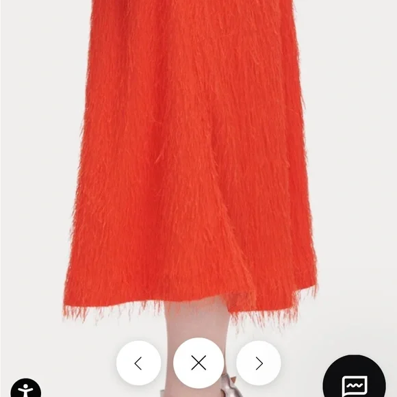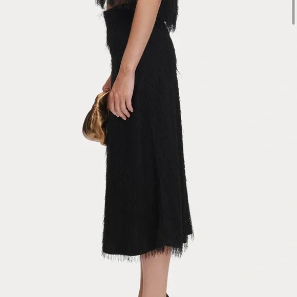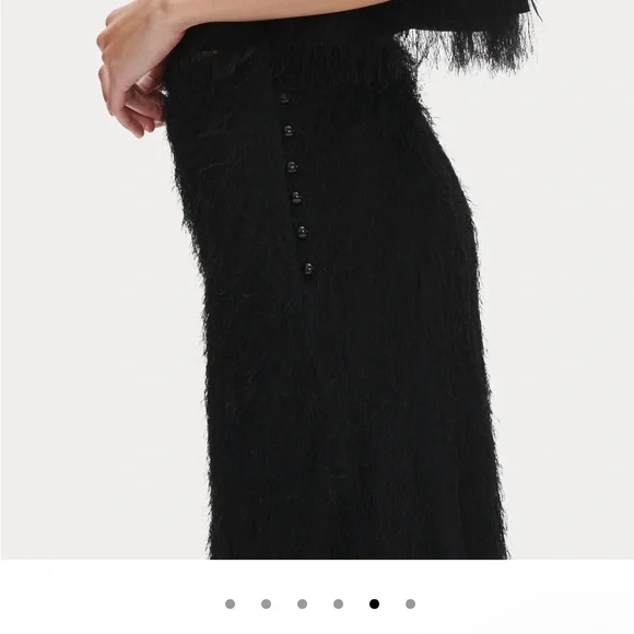 Black beautiful fringe fabric with lots of movement and wonderful silky feel! This was a best seller at Rachel Comey and is in excellent condition. The eyelash crepe fabric has lovely movement. I wear a 27 and it felt great and not tight at all. I would say 26-28 this would fit just fine High-waisted A-line skirt in our fun and feathery Eyelash Crepe jacquard. Wear with the matching Bacchus Top for a perfect party look.• 72% Acetate, 28% FSC Viscose• Button closure• Made in USAStyle: 241W-563-S1731Color is black but I added a pic of the orange color so you can get a closer look at the lovely fabric