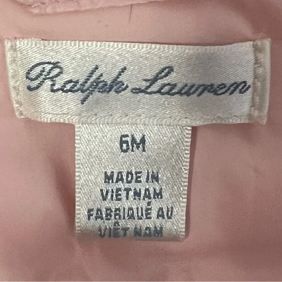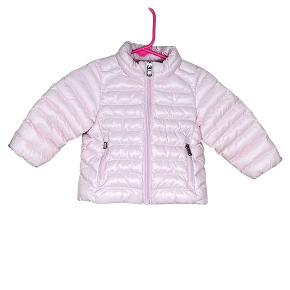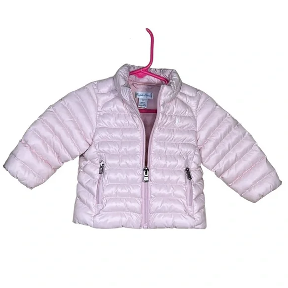 Ralph Lauren Infant Soft Pink Insulated Puffer Jacket Size 6 Months EUCAdorable zip front jacketTwo zippered pocketsShell 100% nylon, lining 100% nylon & filling 100% polyester Approximate measurements laying flat:Armpit to armpit 10”Length from shoulder to bottom 11.25”Preowned in excellent condition with no stains, holes or pulls. Looks like new.