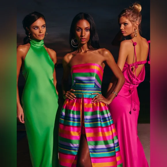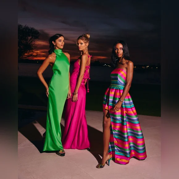 size 0, 2, 4, 6, 8NWOT, All Offers are welcomeThis stunning floor length halter gown offers a flattering and snug fit thanks to the stretch satin fabrication. The high ruched neckline ties at the neck, and a mid-song twirl will show off the red-carpet worthy bow, plunging back and discreet center split that optimizes movement so you can strut into any room in style. Unlined– 100% Polyester– Dry Clean or Hand Wash– Style #: E0222337❤️🎤 Items are sold as-is. All merchandise is 100% authentic, sourced directly from exclusive fashion trunk shows, industry conventions, sample sales, and overstock events. Due to the unique nature of our inventory, sizes and quantities are limited, ensuring you receive one-of-a-kind pieces at exceptional value. Shop with confidence knowing every item is genuine and carefully curated.❤️ Some items may be without tags or have labels/care labels marked or partially removed. These minor adjustments are a result of special sales initiatives or policies to prevent store returns, ensuring you receive authentic products at incredible value. Each piece is carefully curated, offering you a unique opportunity to own premium items at a fraction of the cost.