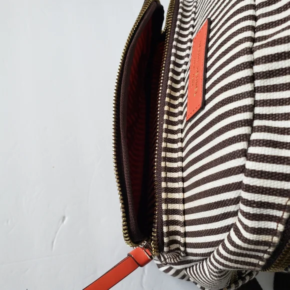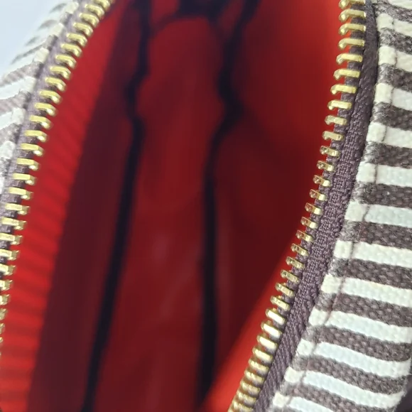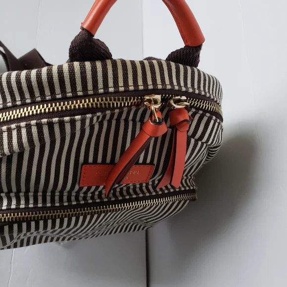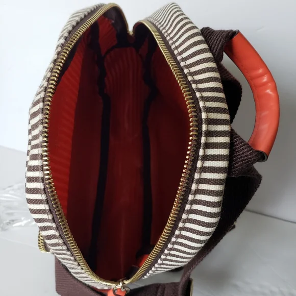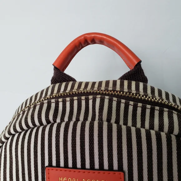 UsedGreat Condition Material: CanvasGold-Tone Hardware Striped LOGO Canvas With The HENRI BENDELName At The Front.Orange Detail Water Resistant Zippered Closure Separate Zip Compartment At the Front(Ideal For Stashing Your Phone)Size: 9.5" x 8.75" x 4.25"Cleans Inside & Outside ***RARE & HARD TO FIND***