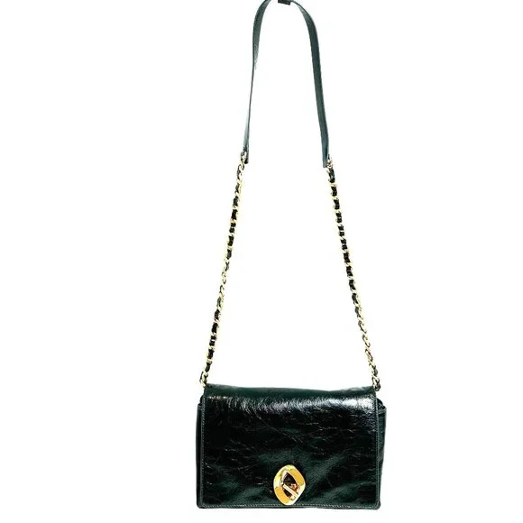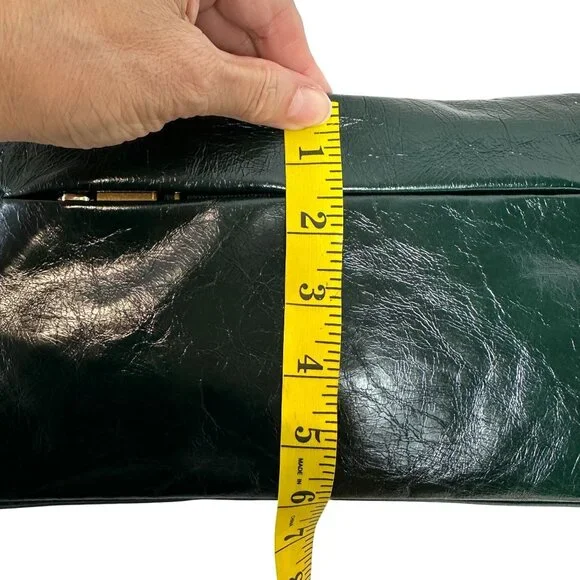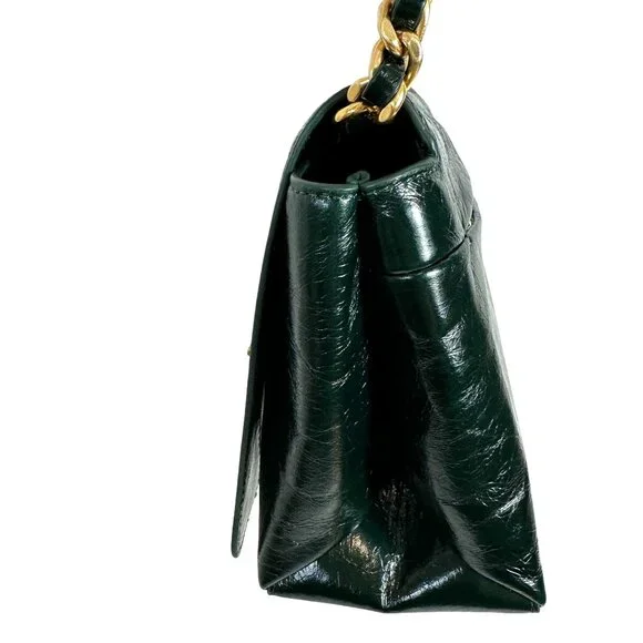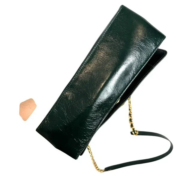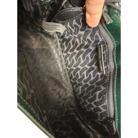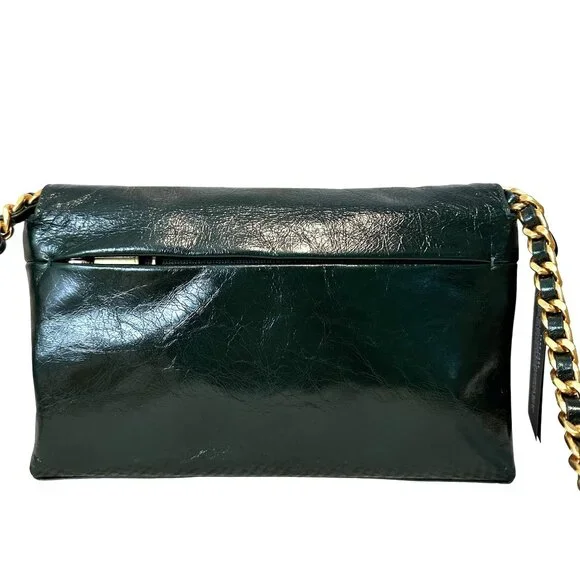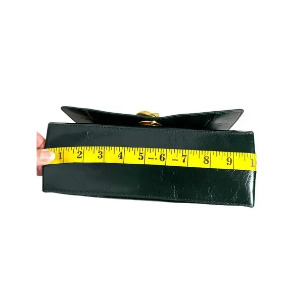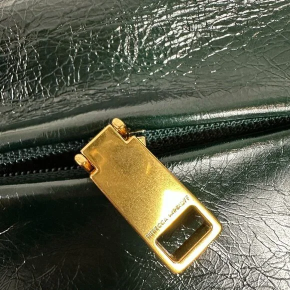 Rebecca Minkoff G Crossbody Bag Green Dark Envy Turnlock Chain $298 NEWTextured glossy leather in a very dark green, amazing antiqued hardware turnlock, back zip pocket, inside zip pocket, chain and leather crossbody strap.NEW with TagCrossbody strap with 44 1/2" dropApproximate Dimensions: 9 3/4" Width X 5 1/2" High X3 1/4" Depth
