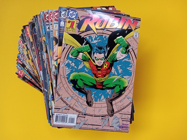 Robin. Tim Drake. Batman. Spoiler. Huntress. Nightwing. Cluemaster. Green Arrow. Catwoman. Wildcat. The Flash. Superman. Mr Freeze. Man Bat. Blue Devil.