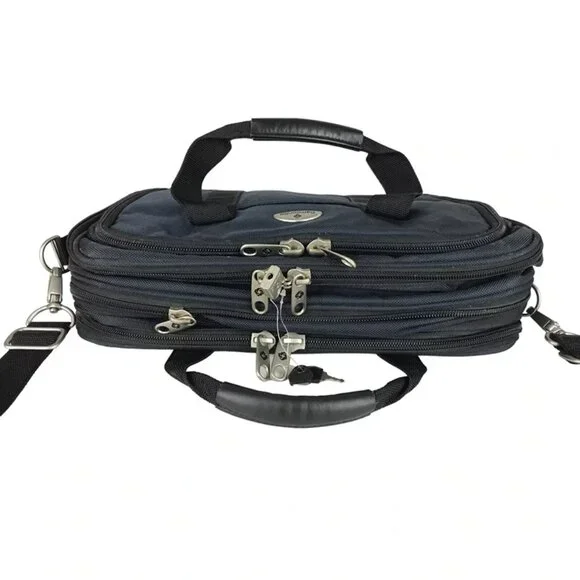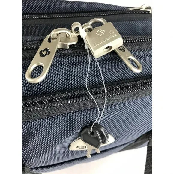 Samsonite Blue Black Zip Around Inner Dividers Laptop Bag With Lock And KeyBrand: SamsoniteDepartment: Unisex AdultsSize: MediumColor: Blue & BlackStyle: Laptop BagMaterial: NylonTheme: LogoFeatures: Detachable Straps, Zip-Around, Inner Dividers, Pocket, With Lock & KeyHandle/Strap Material: NylonPattern: SolidClosure: ZipOccasion: Casual, TravelHardware Material: Stainless SteelHandle Style: Double HandlesCountry/Region of Manufacture: UnknownCondition: New OtherDimensions: 12 H x 17 L x 8 WSold as pictured. Thanks for looking!All props and/or shoe trees in the photos are not included with purchase.We strive to describe our items to the best of our knowledge.Thank you for checking out Monty’s Stuff Online!