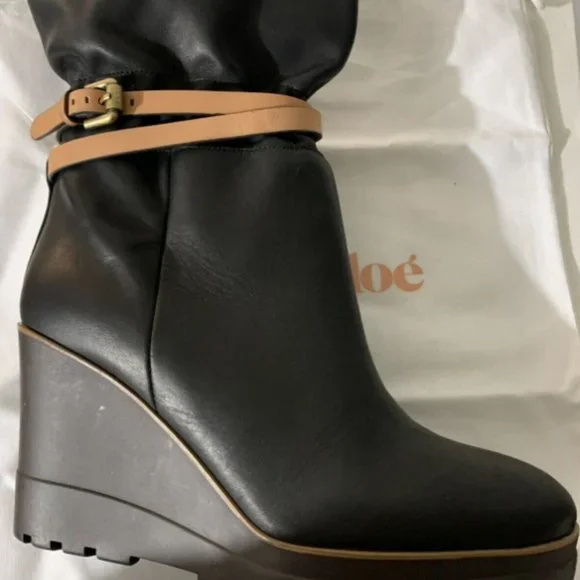 SEE BY CHLOE Paris Robin Ankle Belted Wedge Boot MSRP$495 SZ US 7, 8, 9