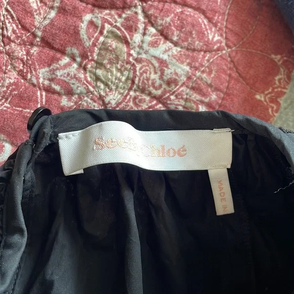 See by Chloe Poplin Embellished Sleeve TopIn black // made out of cotton // marked a size 34 which I believe is France sizing, would translate to a US small and I’d say true to size, mannequin is a small for reference// no stretch so refer to measurements// amazing condition, very minor spots it just needs to be properly cleaned Approx measurements 17” pit to pit 17.5” sleeve inseam27” length