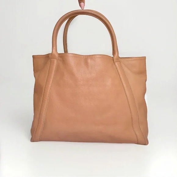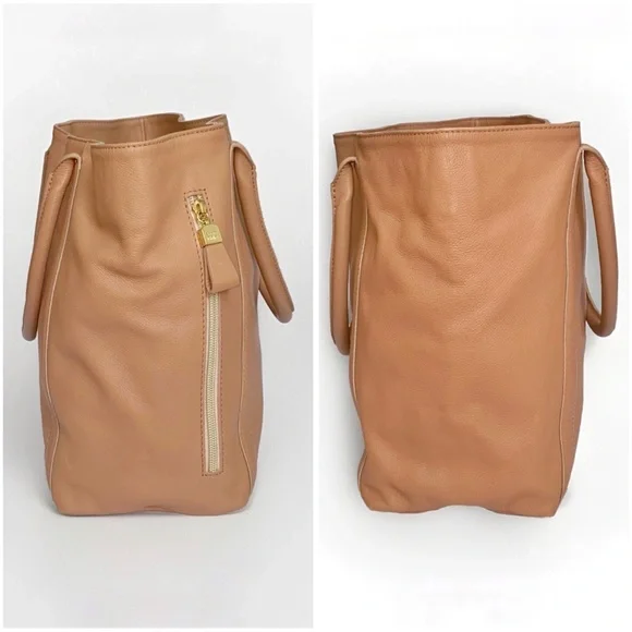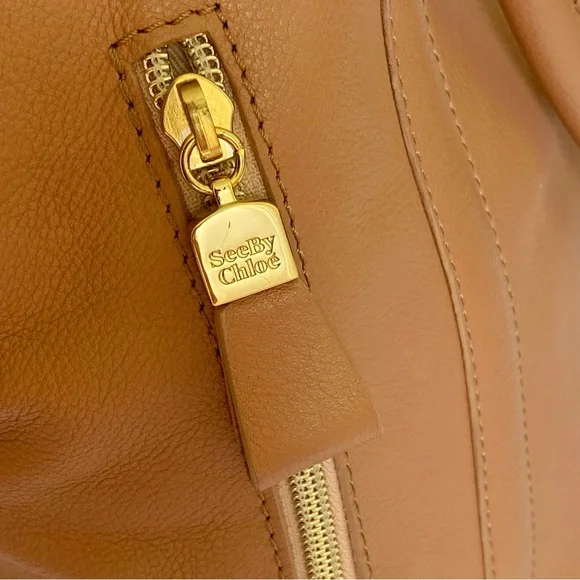 SEE BY CHLOE HARRIET HOBO TOTE SHOULDER BAG IN COGNAC LIGHT BROWN REAL GENUINE LEATHER• hard double top handles• long exterior zipper pocket on the left side• gold tone hardware • single snap top closure • front and back side stripes detail• feet on bottom of bag• fully lined interior with 1 zip / 2 slip pockets• CONDITION •EXTERIOR: GOOD CONDITION! Light signs of wear. Most notable some light wear to 2 corners and wrinkling to the leather in some areas which has caused structure loss. INTERIOR: GOOD CONDITION! There’s a small spot in 1 bottom corner. SEE PHOTOS Aprox Measurements14” x 11” x 5.25”7” handle drop18” long straps🤩 ✔️ check out my closet! BUNDLE & SAVE! New to poshmark? Use my closet name DREWSULA123 as the refferal code when you sign up and get %10 off! 🤩 Tags: Chloé SeeByChloe SBC east west tan khaki all solid plain two 2 soft unstructured rectangle rectangular handbag hand bag purse designer Laetizia 0