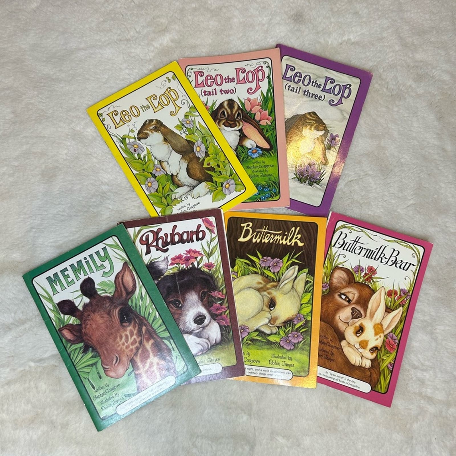 Mint condition! Vintage Serendipity Leo The Lop 1, 2 and 3 illustrated book series along with friends! Memily, Rhubarb, Buttermilk, and Buttermilk Bear. Written by Stephen Cosgrove, illustrated by Robin James. Bundle or set of 7 books!