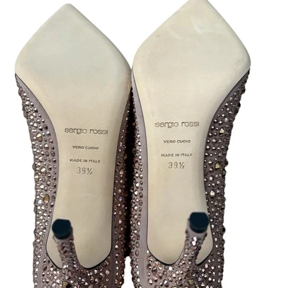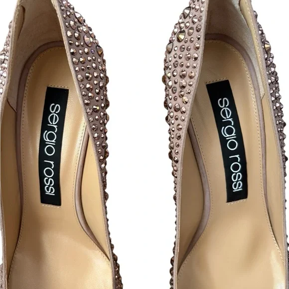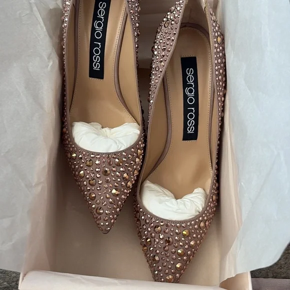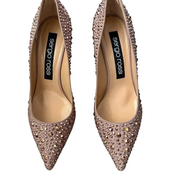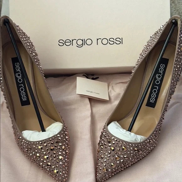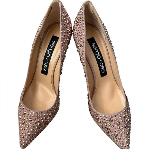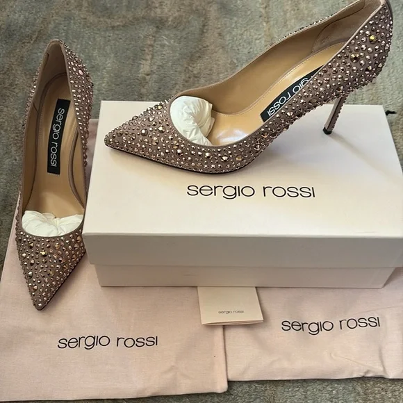 Sergio Rossi Made in Italy CrystalEmbellished Leather Heels Size IT 39.5/ US 9.5 New New with box and dust bagsNude /rose colorStunning pair of heels!Step out in style with these stunning Sergio Rossi pink embellished shoes. Perfect for any occasion, these shoes add a touch of elegance to your outfit.Crystal detailsPointy toeHigh heelsLeather soles Heels: 3.75"Made in Italy