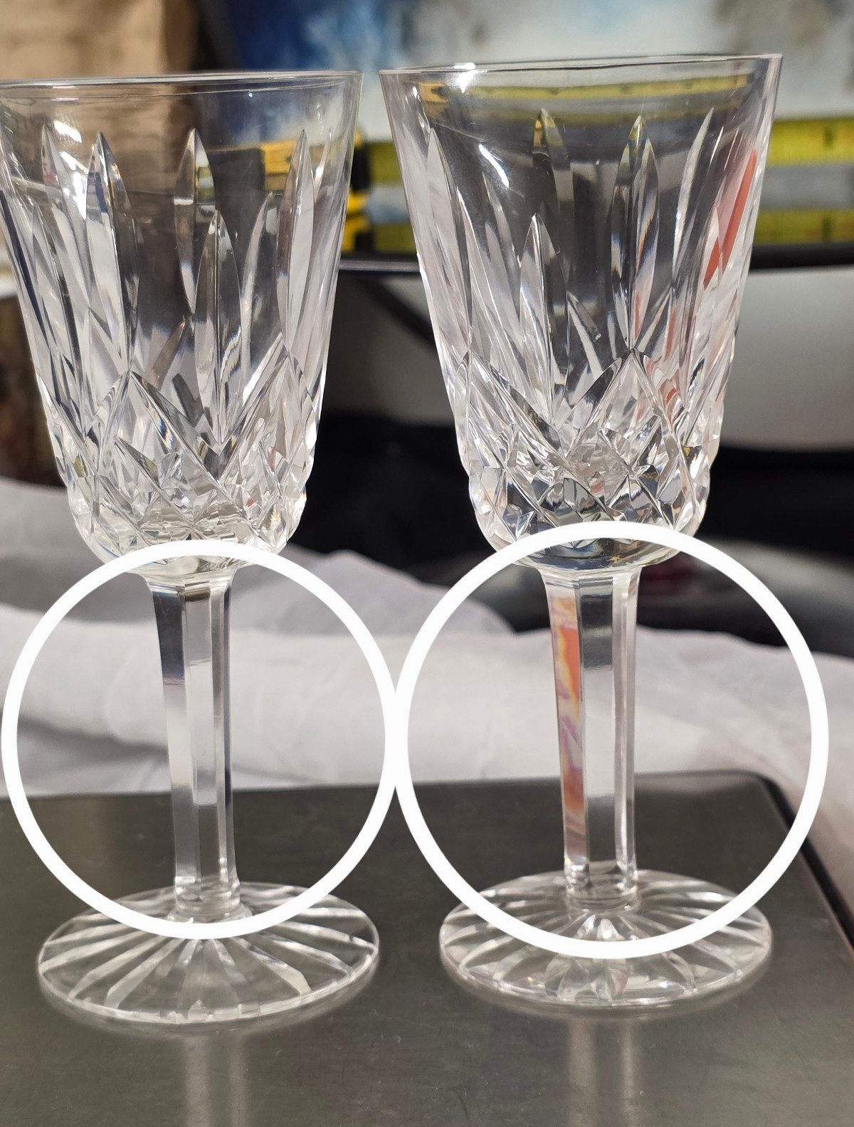 There is a slight difference in thickness in the stem of one cup and the other. Check the last picture.