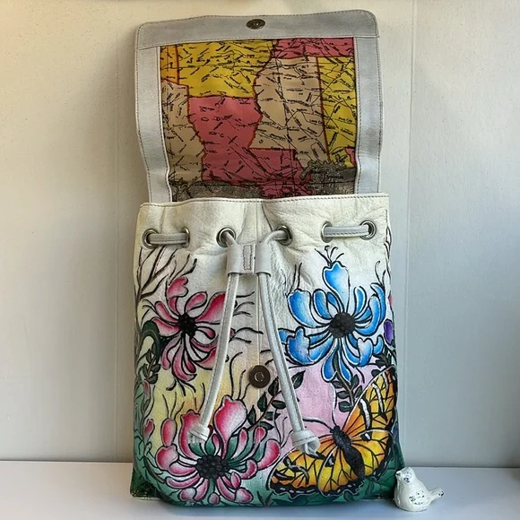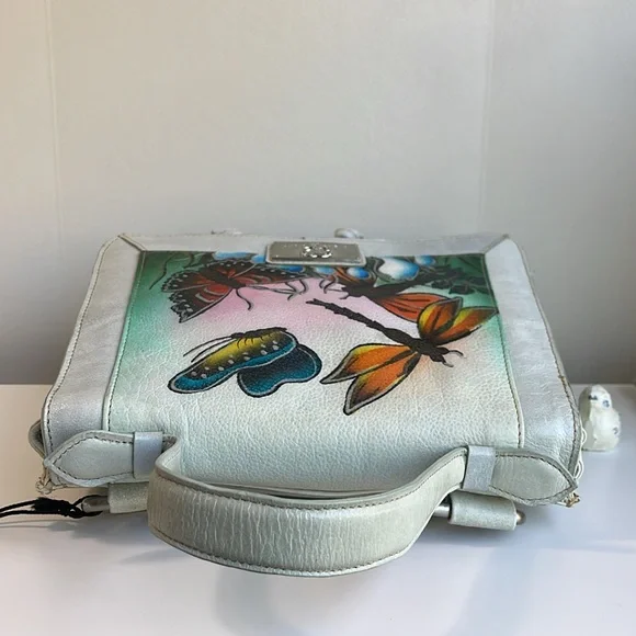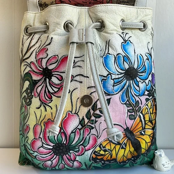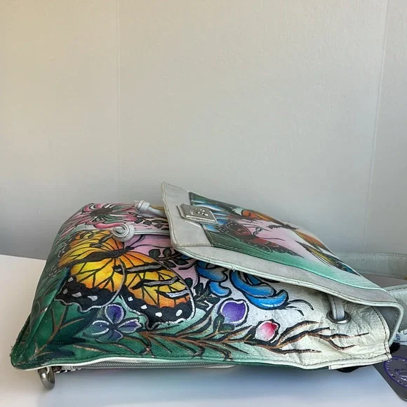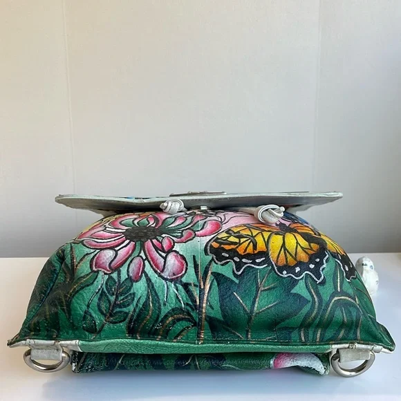 Discover the vibrant artistry of the Sharif Multicolor Hand-Painted Leather Bag. Featuring a stunning array of colors, this bag is perfect for adding a splash of creativity to your outfit. The intricate butterfly and floral design makes it a unique accessory for any occasion.# Please Enlarge Photos For Details which They Are Part Of My Description# Product Color May Slightly Vary Due to Photographic Lighting Sources or Your Monitor Settings# All Measurements Are Approximate# Smoke Free Home🚭# Pet Friendly Home 🐶 Condition:#Fair#Good#Excellent#New With Tag ✔️