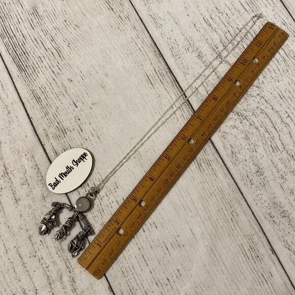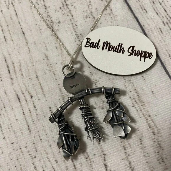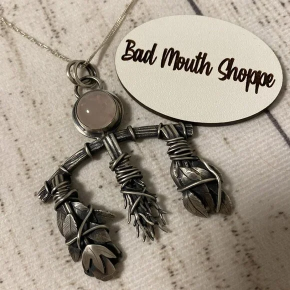 Condition:- Bought directly from the artist. I am the original owner.- Worn *maybe* once. Stored in a jewelry chest otherwise.- EUC. Please view and inspect photos.General specs from the artist:- The Rose Herb Rack pendant has been created entirely by hand using sterling silver wire and sheet. The bundles include rose flowers and leaves, rosemary sprigs and bay leaf sprigs which have been individually wrapped and tied onto the rack frame; the middle bundle is only attached through soldering instead of by wire.- The pendant is finished with a rustic patina and a dull shine; at the head of the piece sits a rose quartz stone in a plain bezel setting.- This pendant comes with a sterling silver 20 inch twisted curb chain.Notes:- New to ? Sign up before you buy and use invite code BADMOUTHSHOPPE for a discount on your first order!- Click thru to my MEET THE POSHER listing for conditions & terms that apply to ALL of my listings. sales, and/or trades!