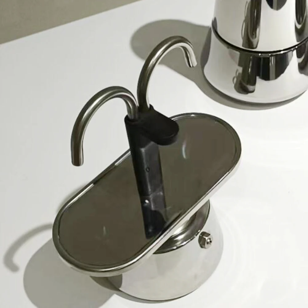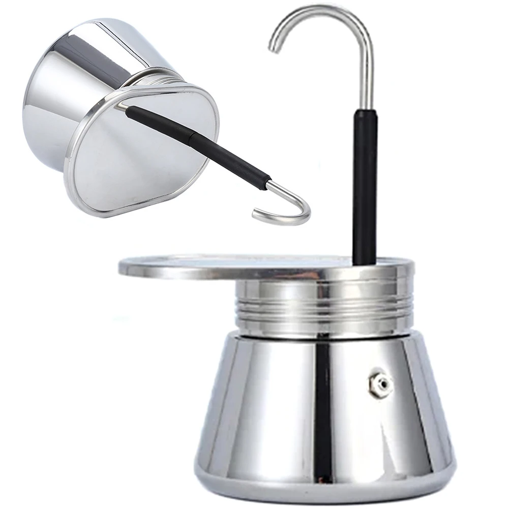 1. Compact and lightweight moka pot: Enjoy the convenience of a small and lightweight coffee pot that is easy to carry. Its portable design allows you to take it anywhere you go. When not in use, it can be easily hung on various kitchen hooks, saving space.