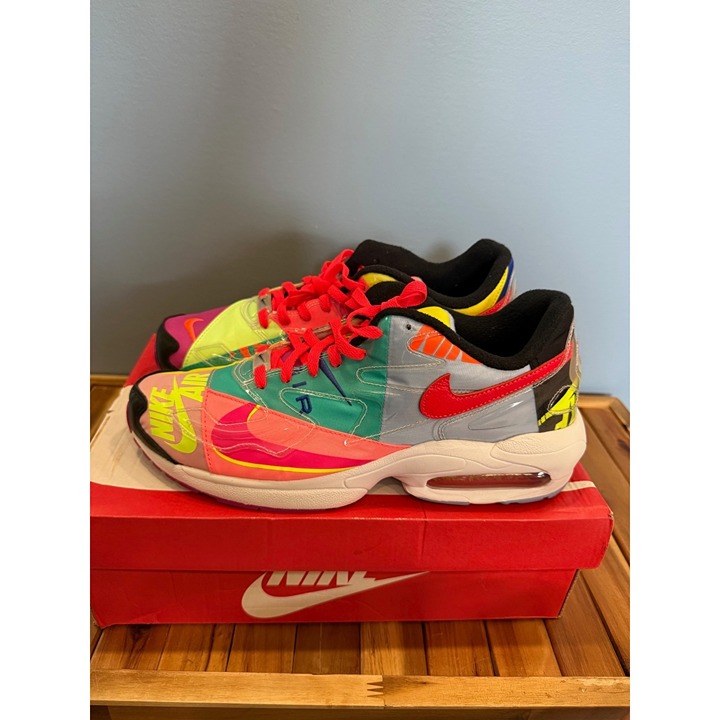 The Nike Air Max 2 Light Atmos in size 12 is a stylish and comfortable sneaker designed for men. Featuring a classic white color, this athletic shoe is part of the popular Nike Air Max product line, known for its quality and performance. With a sleek design and air max technology, these sneakers are perfect for everyday wear or for hitting the gym. Released in 2019, this particular style (469764-500) combines style and functionality in a versatile package for any man's footwear collection.