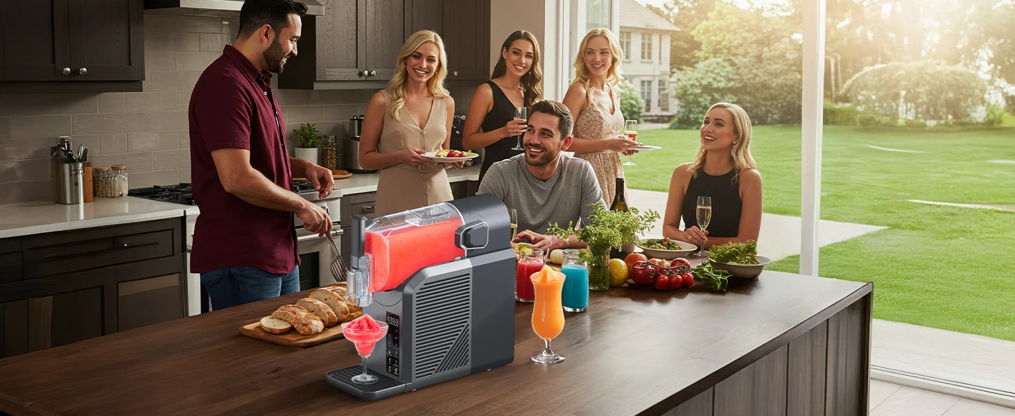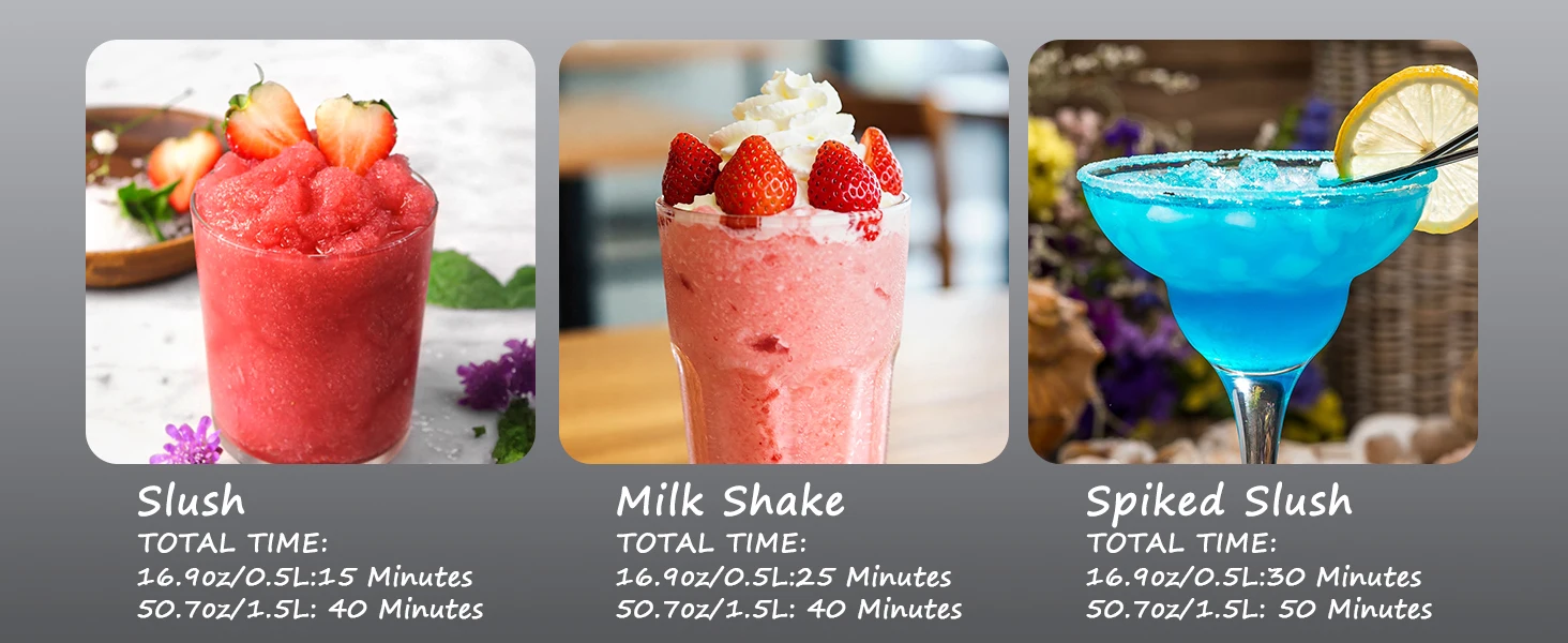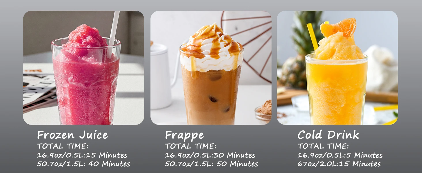 15-30 Minute Fast Freezing:Say goodbye to long wait times! Our powerful, energy-efficient compressor transforms liquids into slush within 15-30 minutes—no need for ice cubes or pre-frozen ingredients. Enjoy smooth, restaurant-quality frozen drinks anytime without skyrocketing your electricity bill.