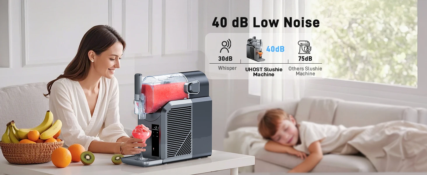 Whisper-Quiet & Hassle-Free Cleaning:Operating at approximately 40dB, this Slushie Maker lets you create frozen drinks without disrupting conversations or relaxation time. Plus, the detachable design and dishwasher-safe parts simplify cleaning—ideal for busy households and frequent use.