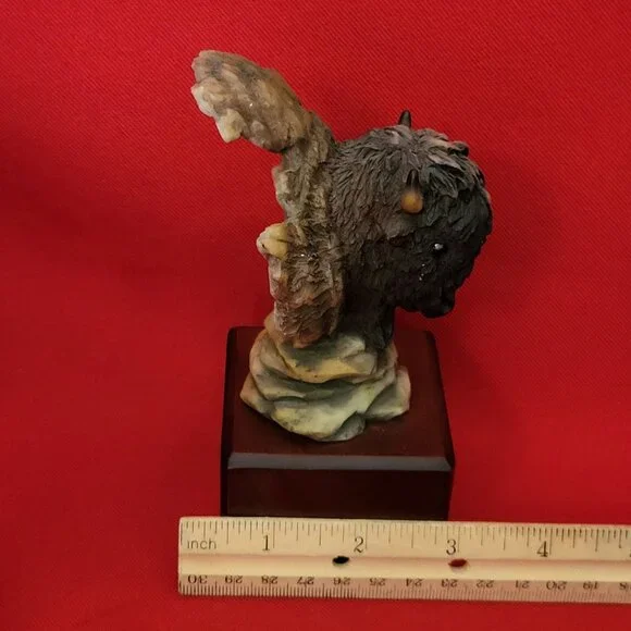 Small Buffalo Bison Head Bust Sculpture FigurineWood BaseApproximate Measurement: 2.5 x 3 x 6 inApproximate Weight: 10.7 ozYour item may come in a re-used box with some labeling from other companies In my effort to recycle and re-use. Thank you for your supporting my small business.Features:• SculptureCondition: Pre-Owned Good