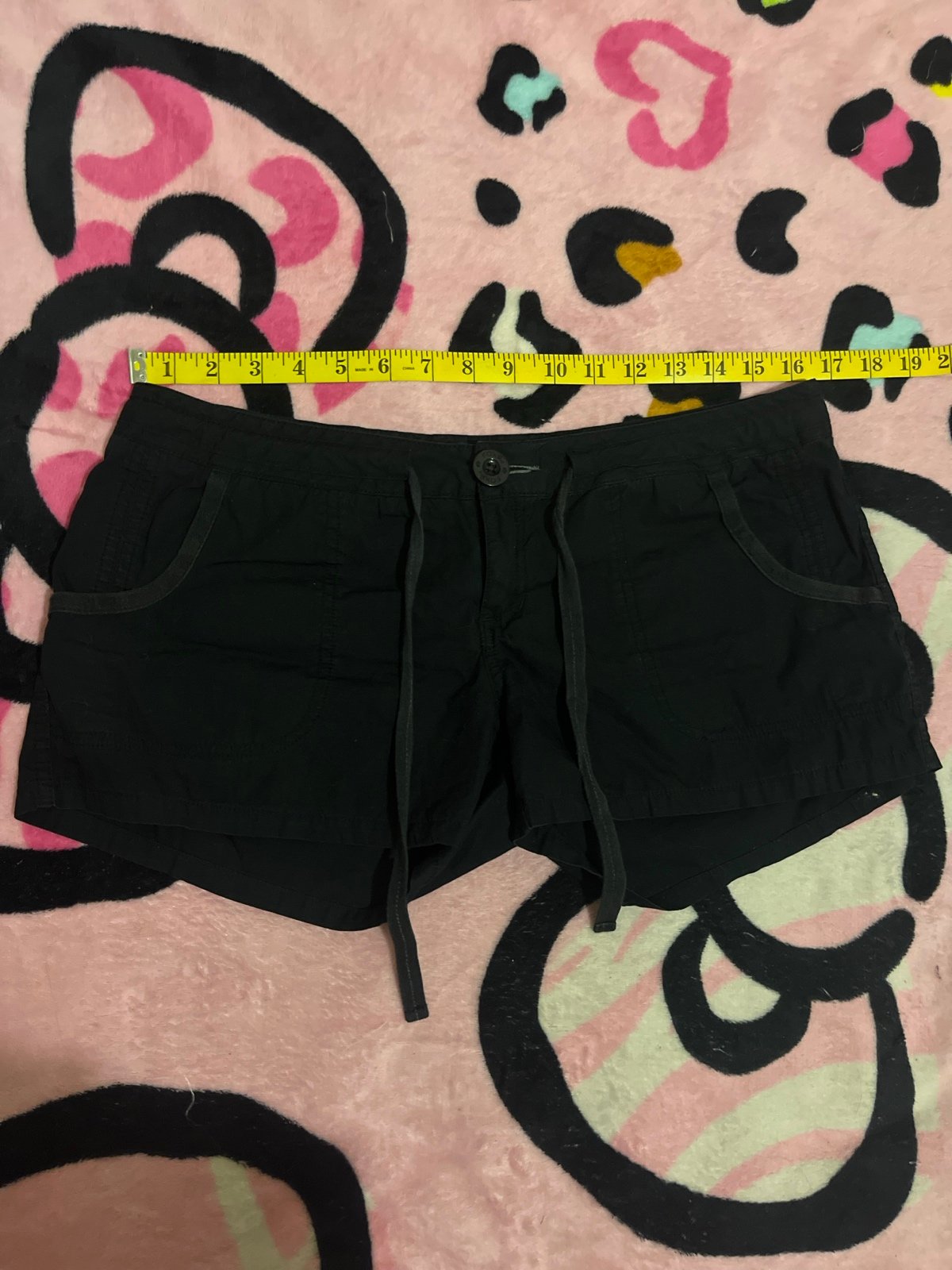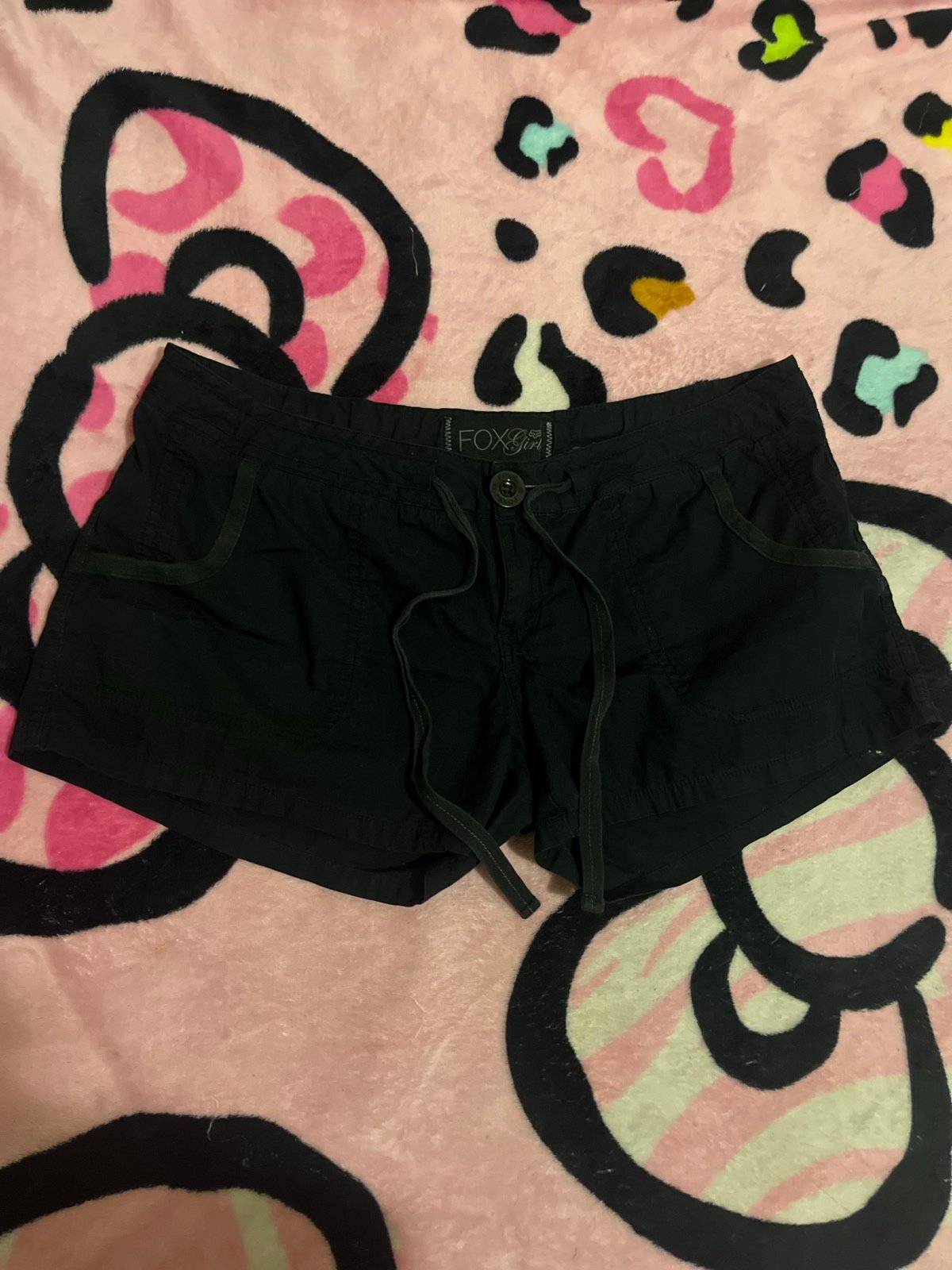 adorable y2k mcbling scene emo FOX womens black cargo style shorts with cute button pockets embroidery and waist tie