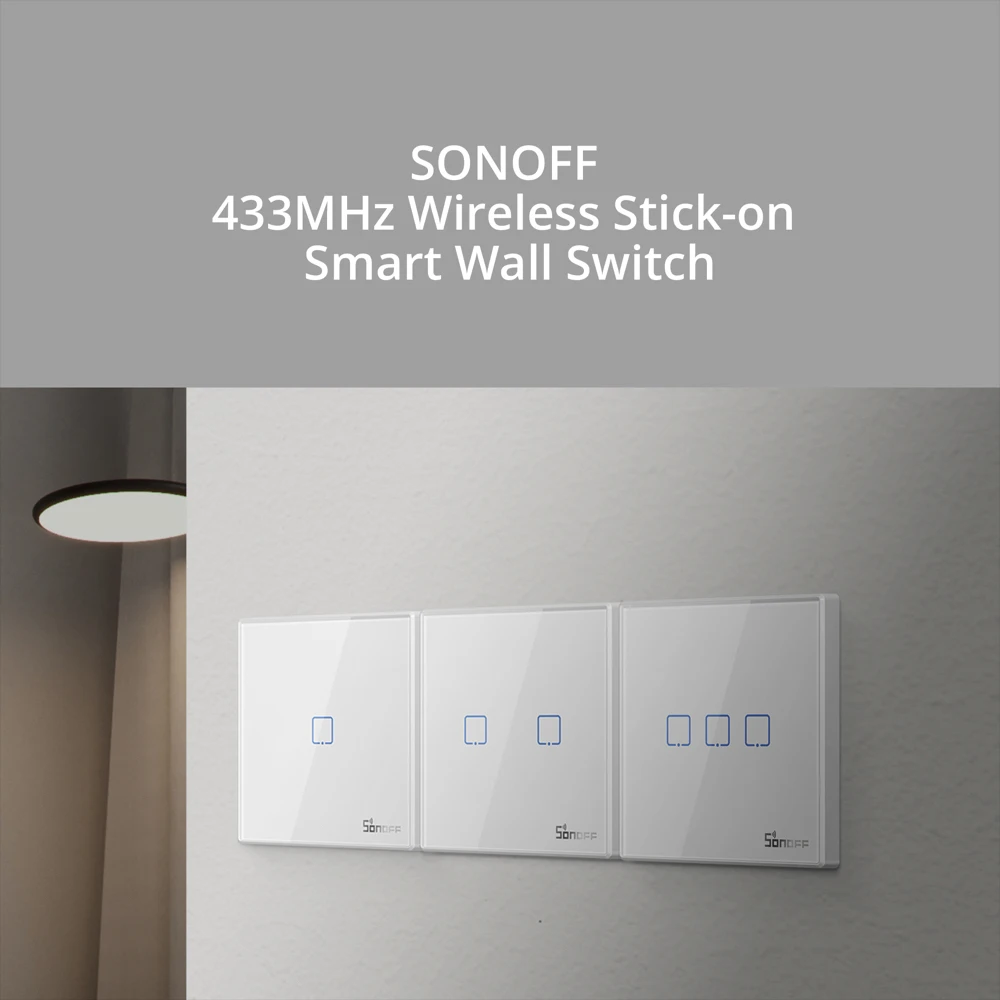 Does the 433MHz wireless stick-on smart wall switch is the extended new arrival of SONOFF’s best-selling TX series Wi-Fi Wall Smart Switch? No. It continues the similar look with TX series to keep your home style modern and artistic, and is actually a 433MHz remote controller.
