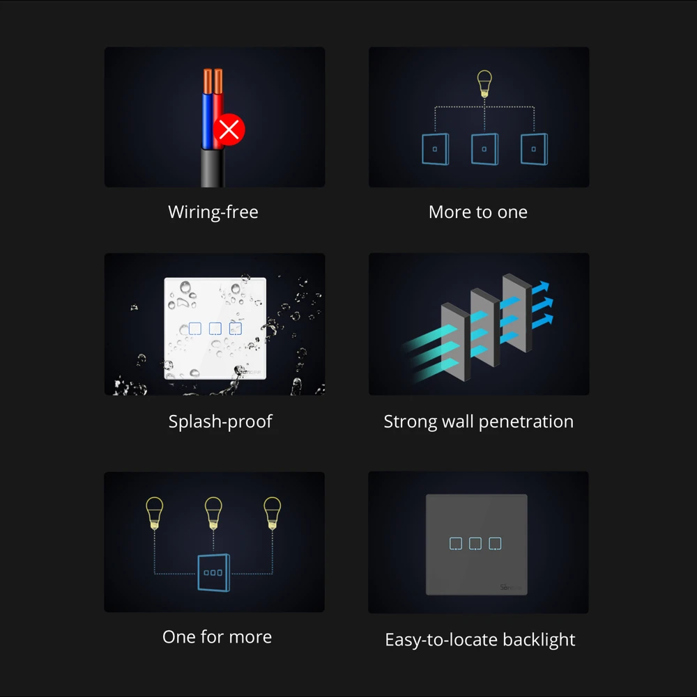 Feel to stick and control. Simple to connect a SONOFF smart switch to your light, and you can attach more than one RF switch on any wall surface that is convenient for you to reach to turn on or off the light.