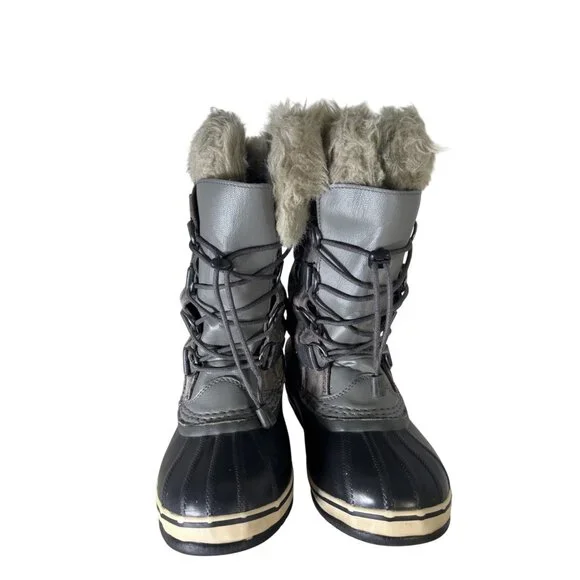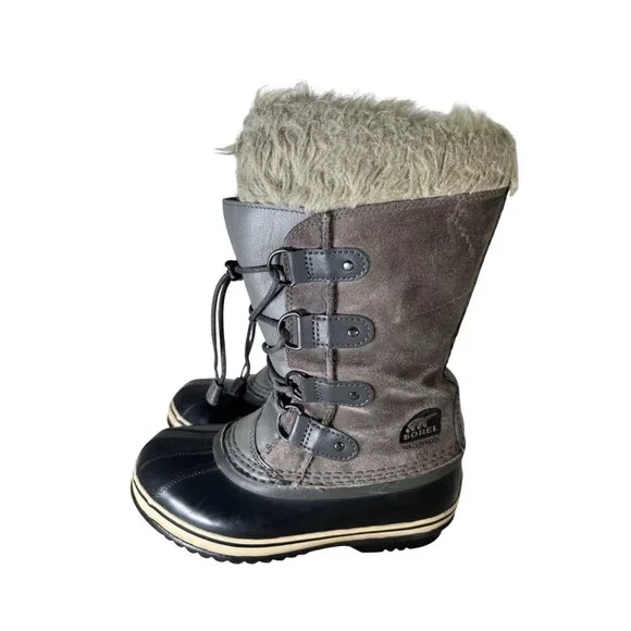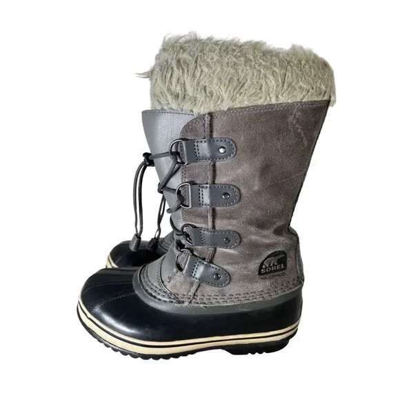These Sorel Joan Of Arctic boots offer comfort and durability in challenging weather. With a waterproof construction and cozy lining, they ensure warm, dry feet during winter adventures. The stylish design pairs well with various outfits, making them a versatile addition to your wardrobe.• Lace-up closure for secure fit• Faux fur lining for added warmth• Durable rubber sole for traction• Mid-calf height for protectionSize: Girls 3Condition: Pre-Owned Good