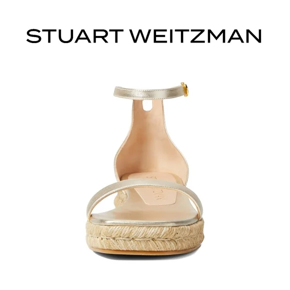 Infuse a dash of elegance to your look as you adorn your feet with the Stuart Weitzman Nudistcurve Espadrille Flat Sandals. Leather upper, lining, and insole. Adjustable buckle strap closure on the ankle. Open square toe. Espadrille-style jute-braided wedge heel. Synthetic outsole. Made in Spain. Measurements:Heel Height: 1 12 in.Weight: 12 oz.Platform Height: 11 in.