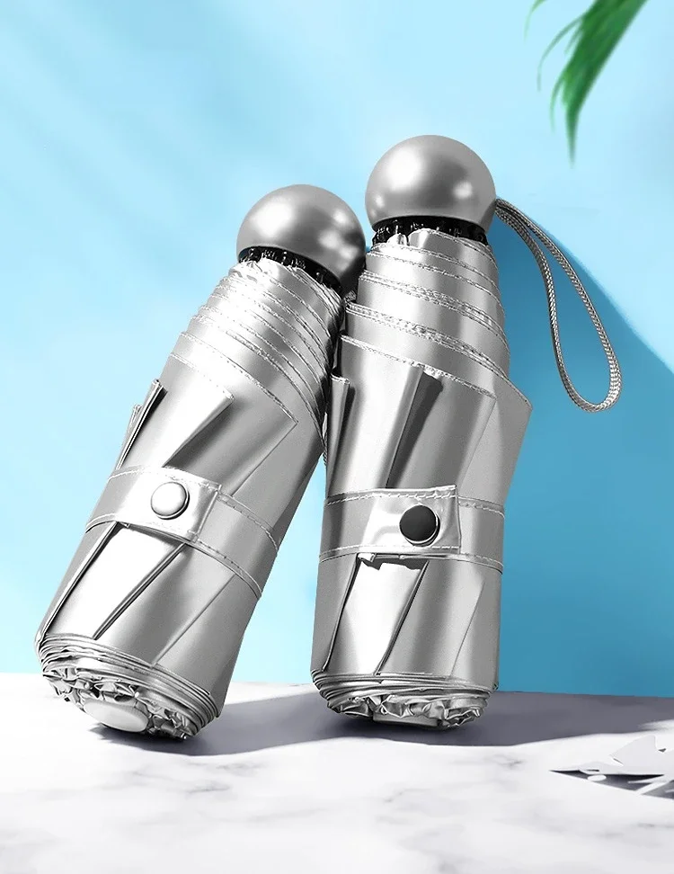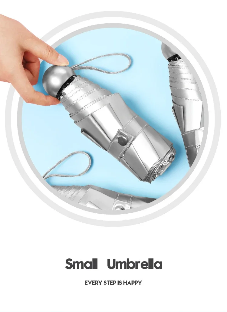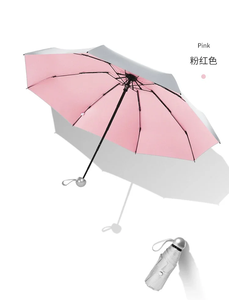 Sun UV UPF50+ Protection Rain Umbrella for Women, Thickened Titanium Silver Cloths Parasol,Small Sunshade folding Rain Umbrellas