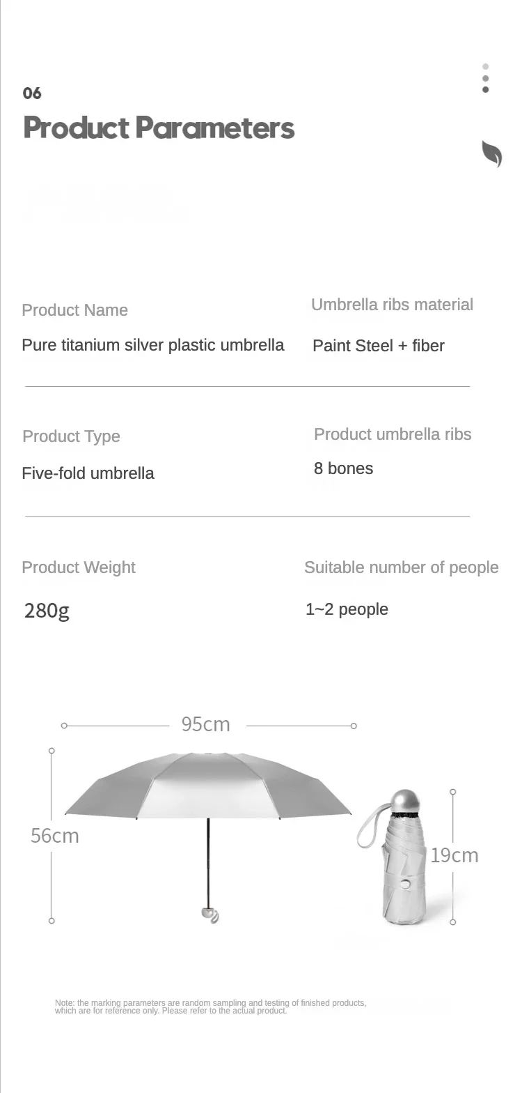 The highly effective titanium rubber umbrella cloth can block the filtering up to 99%,