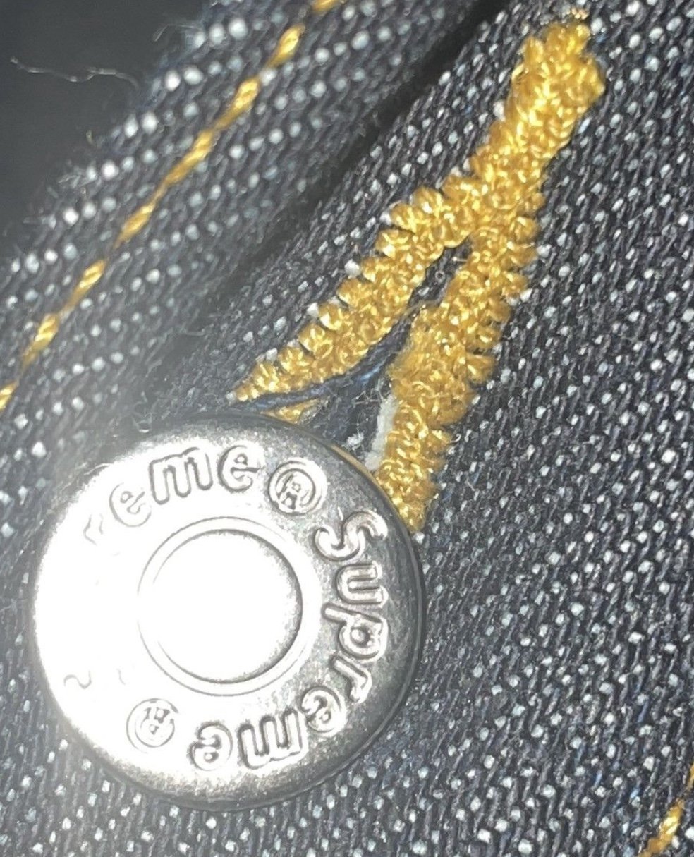 Supreme Rigid Slim Fit Denim in gently used condition. Worn for a couple hours 3-4 times. Casual occasions. Perfect fit for those looking for a slim fit without the jeans completely hugging your legs. I prefer a relaxed fit in jeans and I don’t wear skinny jeans whatsoever. These however are quite comfortable and look great on me at 6’2” 225lbs. 34” waist and 32” inseam. Original Supreme bag with tag comes with these. 100% authentic guaranteed.