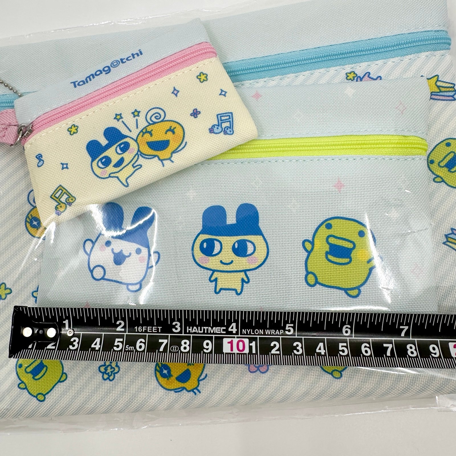 Official tamagotchi themed zippered pouches. This comes in a set of 3 pouches with different designs on each. Features characters like Kuchipatchi, Mimitchi, Violetchi, and more!