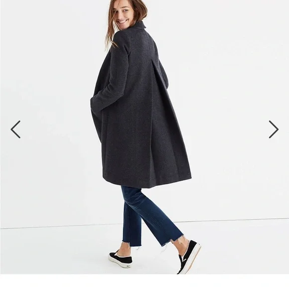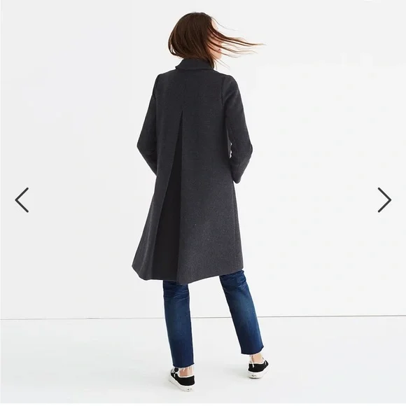 New with tagsA timeless wear-with-everything coat in supersoft double-faced melton (the sturdy wool weave that shows up frequently in fine menswear). Tailored in front and swingy in the back (thanks to a well-placed pleat), it's detailed with pickstitching for a true his-side-of-the-closet finish.True to size.Wool/nylon/poly.Dry clean.Import.F7304