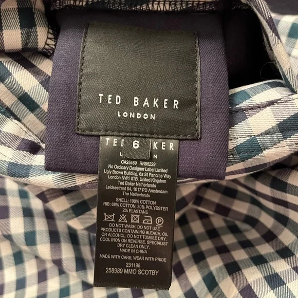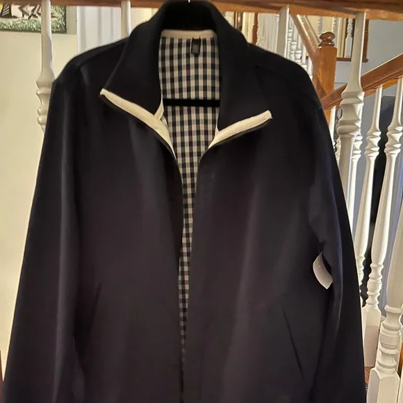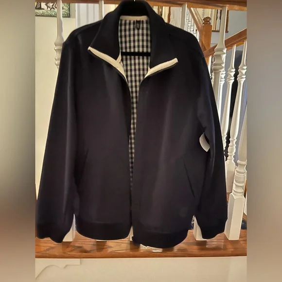 *Ted Baxter high-end men’s casual heavyweight jacket. Shell is 100% cotton rib is cotton, polyester and elastic *Reversible jacket, solid blue one side plaid on other side. *Purchased new from Nordstrom nearly $300.*Excellent brand new condition.*Size (6) USA-XL see last pic for size chart🚭 Smoke Free Home🐶Pet Free Home📦 Fast Shipping🏘️ Clean Home Environment🖐️⭐SellerThanks for looking!b16