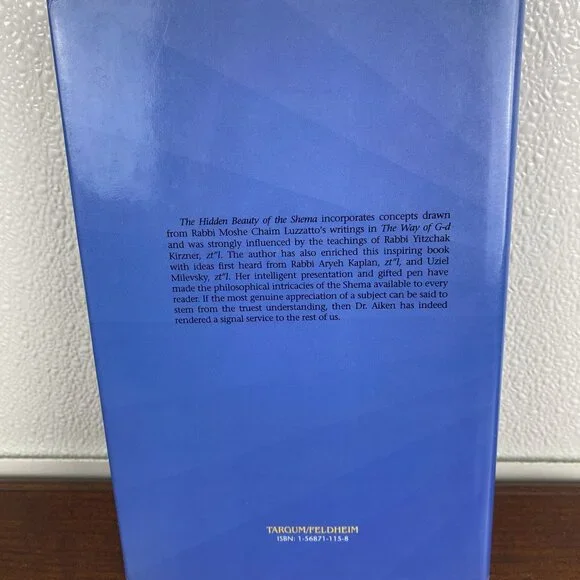This insightful book delves into the profound meanings and teachings of the Shema, incorporating wisdom from revered Rabbis and philosophical reflections.• Hardcover edition• Author: Lisa Aiken• Publisher: Targum/Feldheim• In-depth analysis of Shema• Influences from Moshe Chaim Luzzatto, Rabbi Yitzchak Kirzner•ISBN: 1-56871-115-8Inscription on the front page.Please ask any questions before purchasing.This comes from a private home library and was used for display.This comes from a Pet and Smoke Free home.We ship EVERYDAY MONDAY-FRIDAY so expect to get your item FAST!