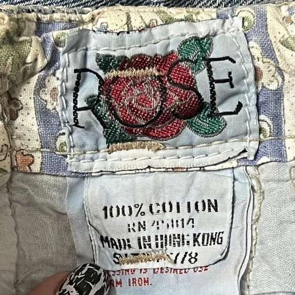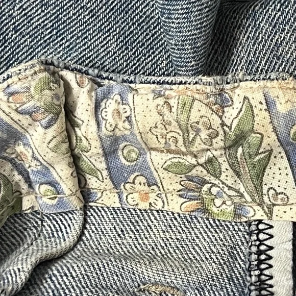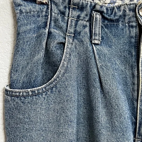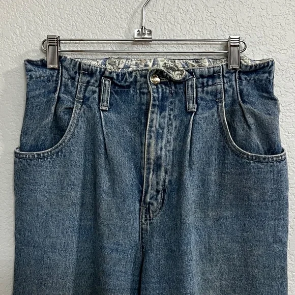 On trend paperbag waist lined with floral fabric.Looks great with a crop top.Hi Rise waist.Front side pockets and no back pockets.Super soft.Made of 100% cotton.In great vintage condition from a smoke free home.Waist 14”Rise 13.5”Inseam 29”Leg Opening 6”5 Star Posh Ambassador, see love notesBundle and save(B)