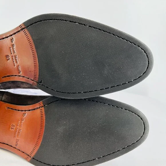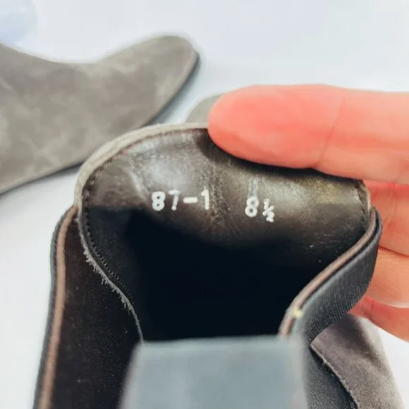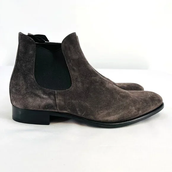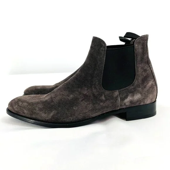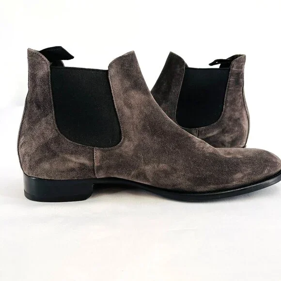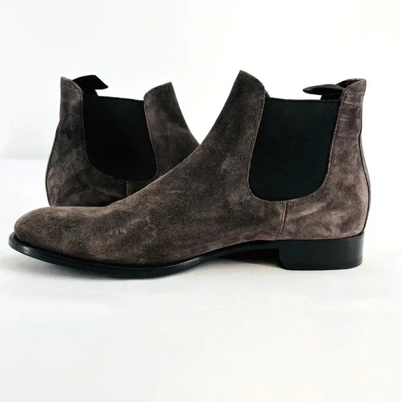 Retail shelf pull. May have spots, blemishes, or imperfections. Actual product you will receive in photographs. Please review photos. Message with questions.Almond toeSlip-on styleSuede upperLeather liningRubber soleMade in ItalyFeatures:• Chelsea, Slip On,• Fall, Winter, Spring• Solid Pattern• Suede CareSize: Mens 8.5Condition: New Without BoxNew Without Box.Please review photos. Message with questions. Thanks!