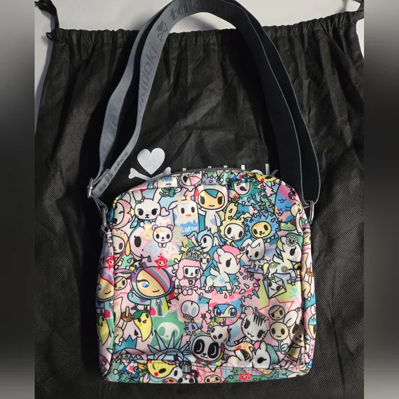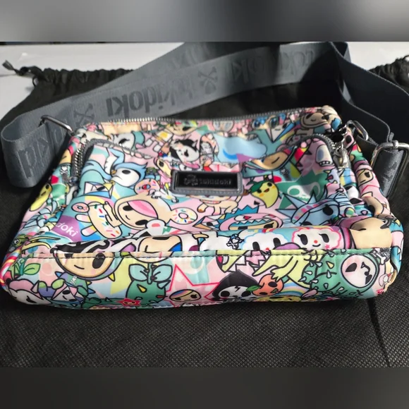 This is a Tokidoki Spring Dreams Crossbody Bag Pastel with Gray Adjustable Strap.It is NWOT.Never been worn.It just stayed in the dust bag.The bag is in pastel colors, and the lining is a teal color.I will include the dust bag as well 😊.The measurements are:length, 8 inches,height,8 inches, and width 2 inches.The 1.5-inch strap is adjustable and measures approximately 54 inches.A perfect gift for a lucky Tokidoki lover.Please see the pictures for additional details. I welcome reasonable offers and encourage bundling. (#0281)