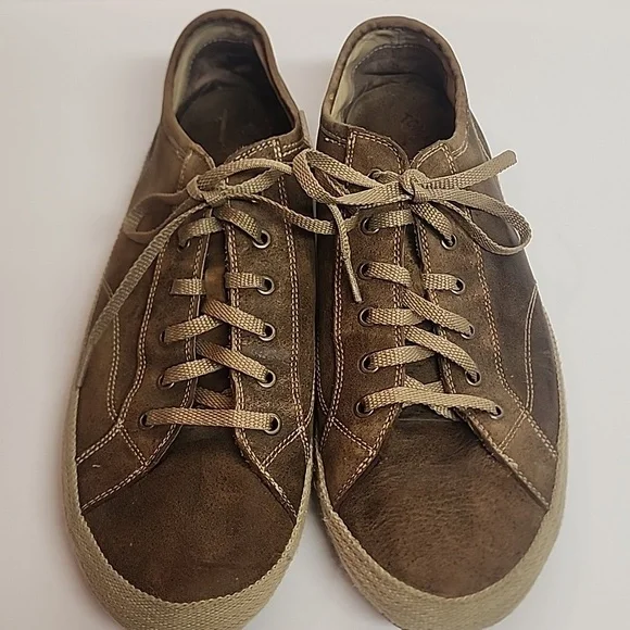 Experience the perfect blend of style and comfort with these Tommy Bahama sneakers. Crafted in a rich brown suede, these low-top shoes feature a minimalist design with contrasting cream soles. Ideal for casual outings, they offer a versatile and timeless look. Vintage and distressed.Pre-owned in good condition.Rich looking and comfortable. Size 13 mens.