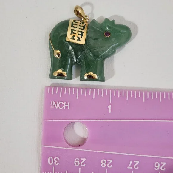 Estate owned. Stored extremely well or indicative of the quality of Jade. Very, very little signs of wear and age. Maybe a ding or a scratch but this could have been purchased yesterday. - Not a reproduction, actual store bought in the 1980's.This classic piece screams, ROAR... Wait no, this is not a dinosaur. My apologies. Did any one else's mother own this piece or one like this? If not, you can now. I love 80's kitch, as a child of the 80's it's in our blood, right? Gemstone: Genuine Jade, am unsure of the origin or what classification of Jade this may be. Trim/hardware: is 14K solid, no broken or loose pieces. *The necklace is marked: 925 Made in Italy and brand new, provided by us. It matched so well, that we included it with purchase.*Maker's Mark: Unable to read. But there is a mark after the 14K.Inquiries encouraged to ensure expectation.Delivers in brand new gift packaging, every time.Mint condition piece. **With Yellow Gold over 925, 'Made in Italy' necklace, chain. Good silky quality.Reasonable offers welcomed.