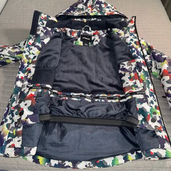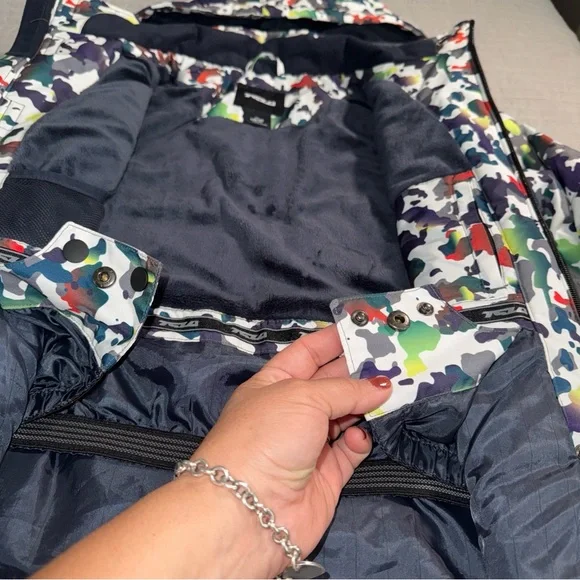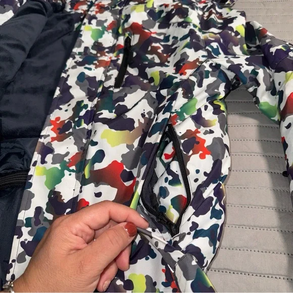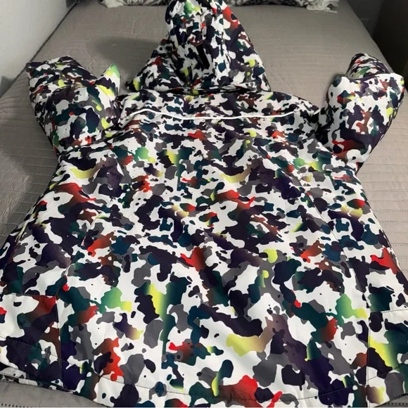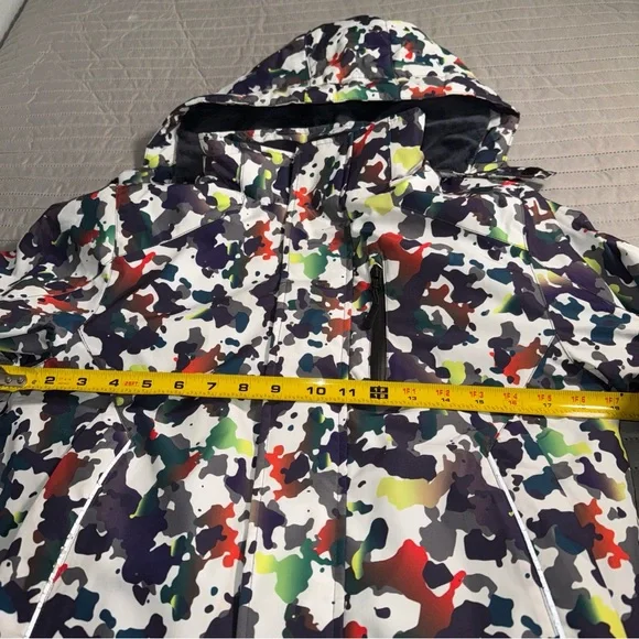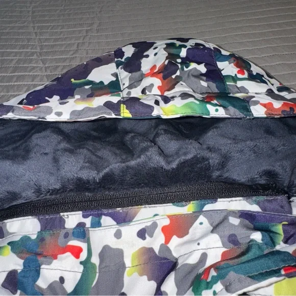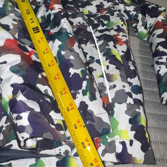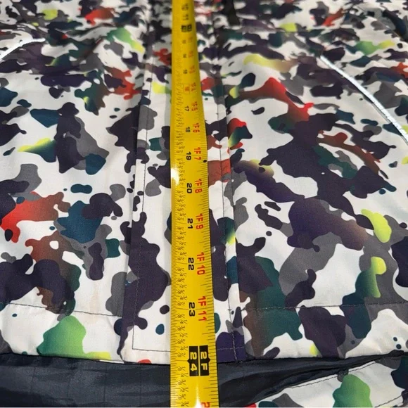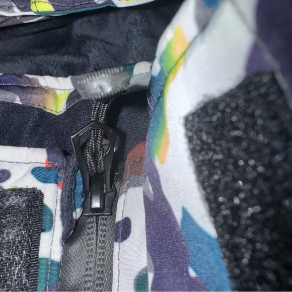 This vibrant kids jacket features a playful mix of colors, perfect for adding a pop of fun to any outfit. Designed for comfort and style, while hitting the slopes or a day of snowy fun or just to take on those bitter cold days, it's a must-have for your child's wardrobe. Size M 10/12 excellent condition please see photos for measurements