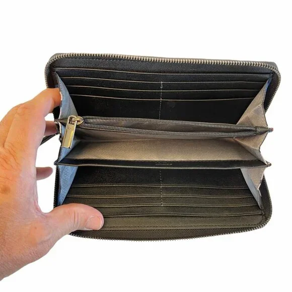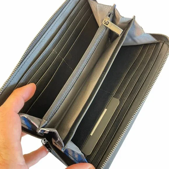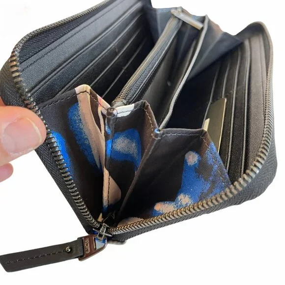 TumiHimalayan sky Print Women's Zip Around WalletItem-04843802HSPOStyle 120792-8303Crafted from Nylon and black leatherOutside slip pocket slotZip-around Multiple card slotsMultiple bill slots & open compartmentsFull length interior zip compartmentApproximate size is 7.9" X 3.9" Guaranteed authenticComes with NO Box or dustbagNew, unused perfect conditionEach wallet has a slightly different pattern on the exterior