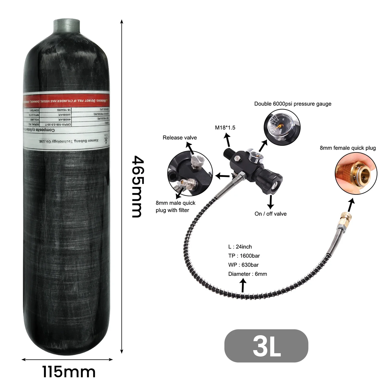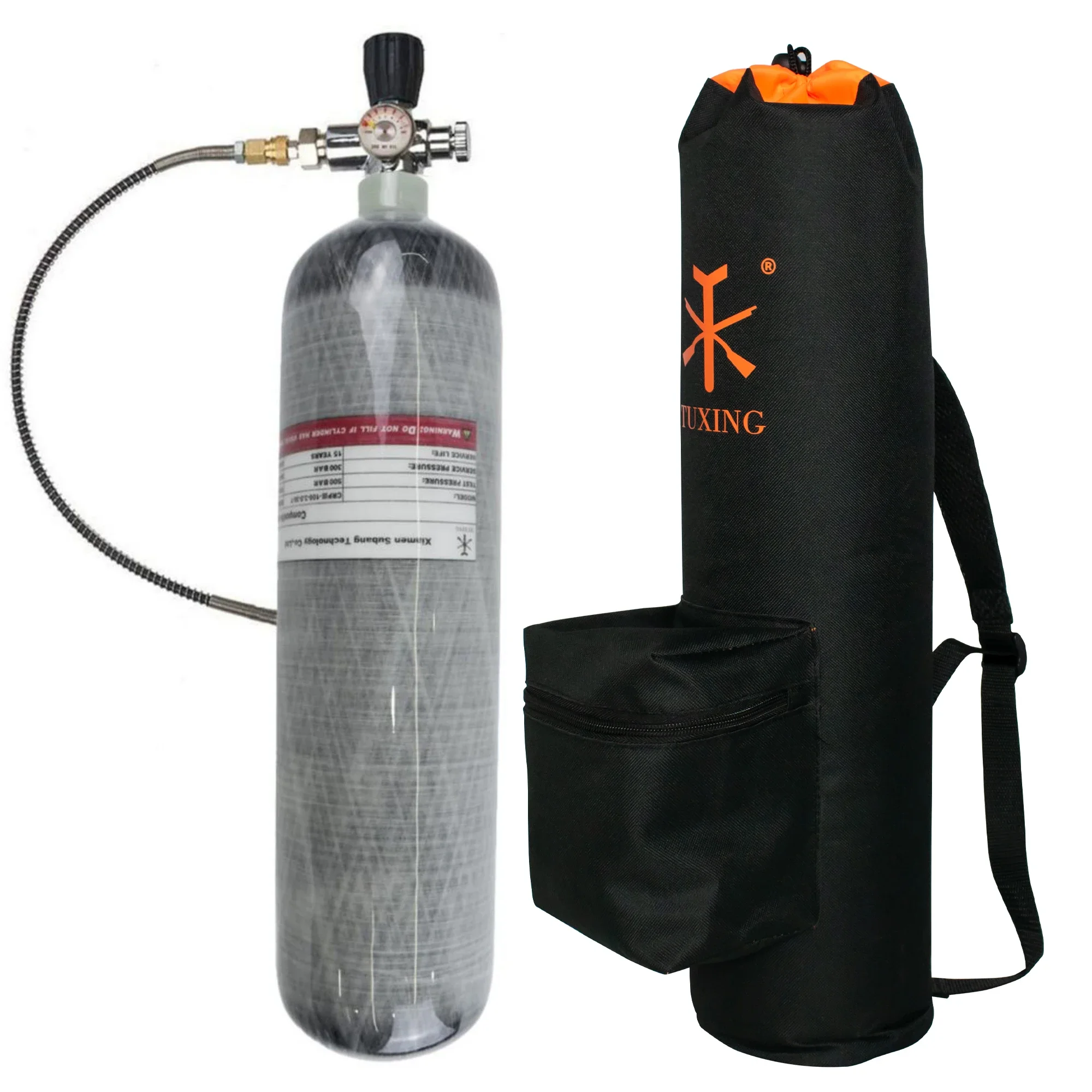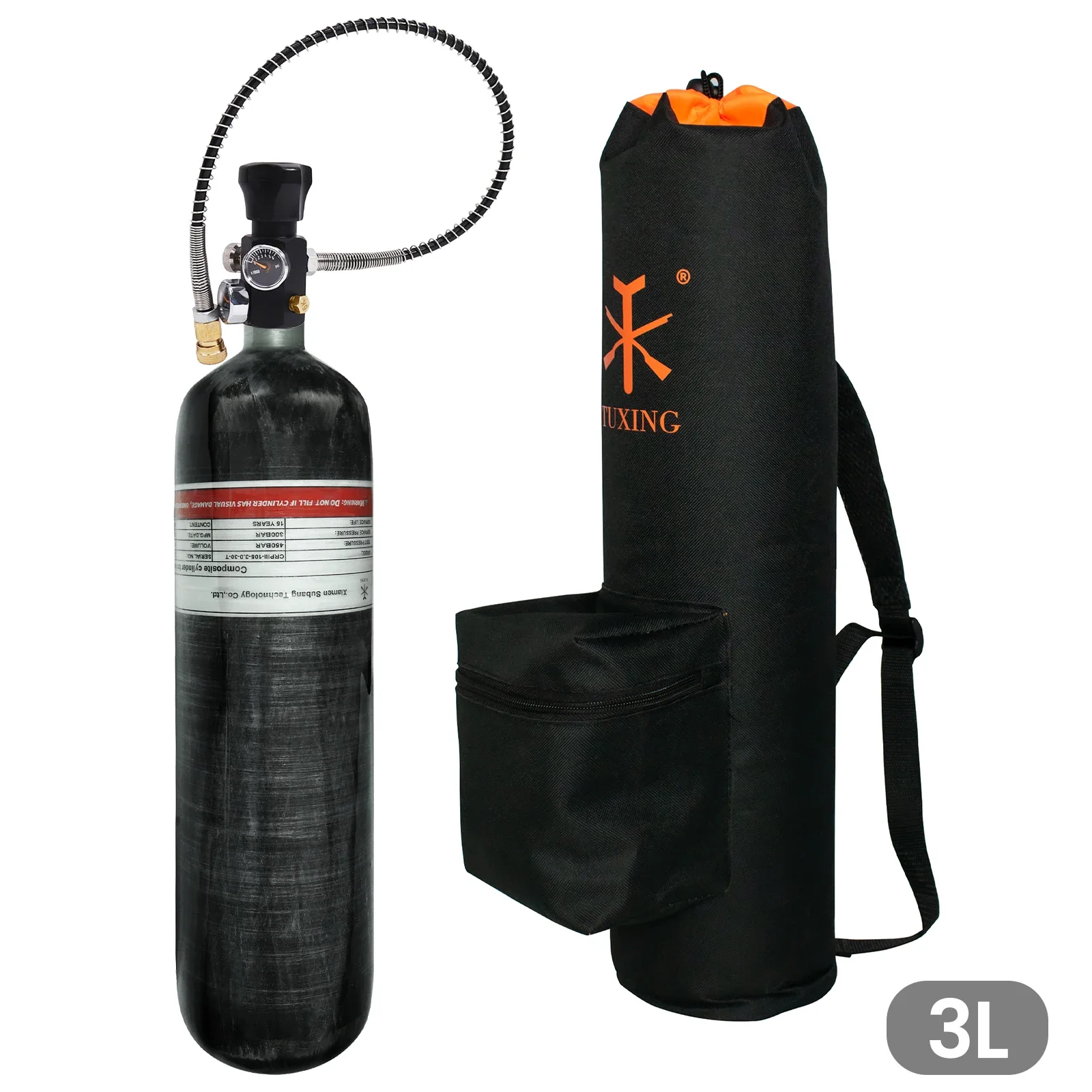 TUXING 4500Psi 300Bar 3L Carbon Fiber Cylinder with High Pressure Charging Regulator Valve Protective Carrier Bag M18*1.5