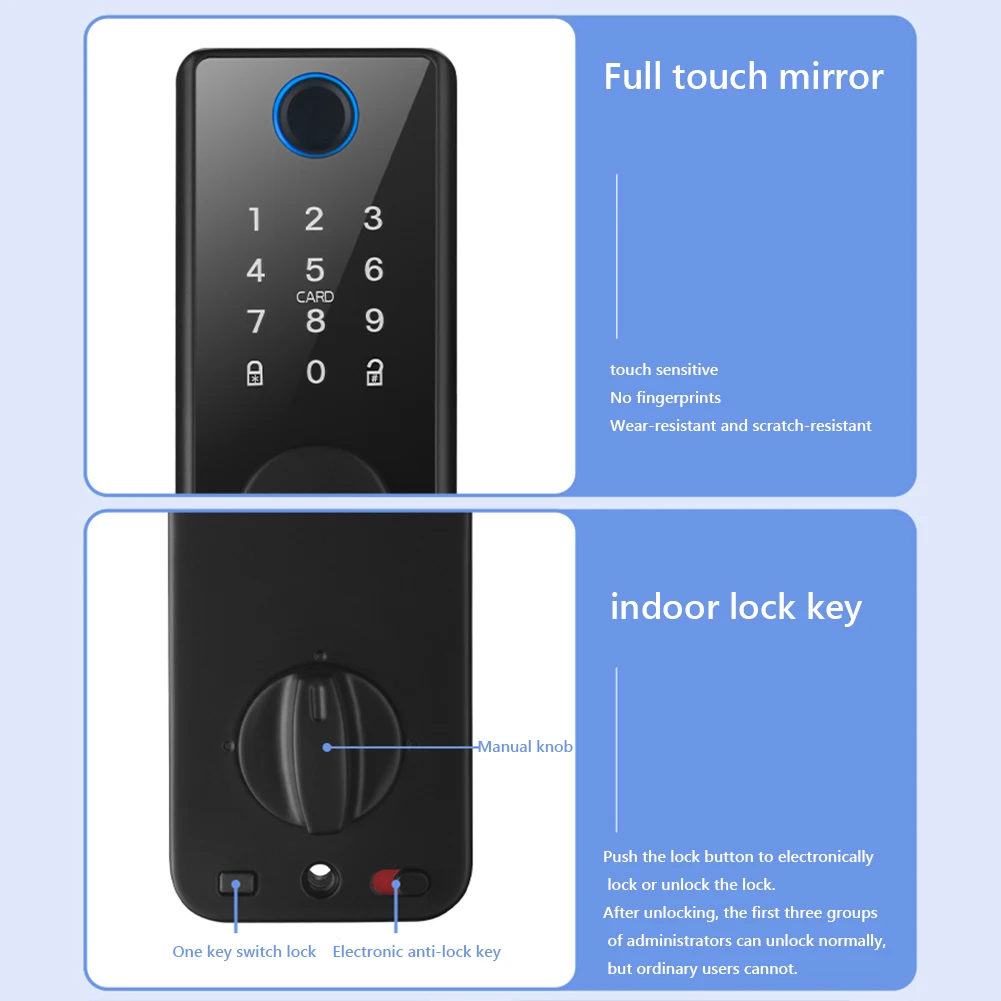 ![]() Bluetooth-compatible Smart Card Digital Code Lock Aluminum Alloy Biometrics Door Lock Keyless Entry Anti-theft with Key for Home