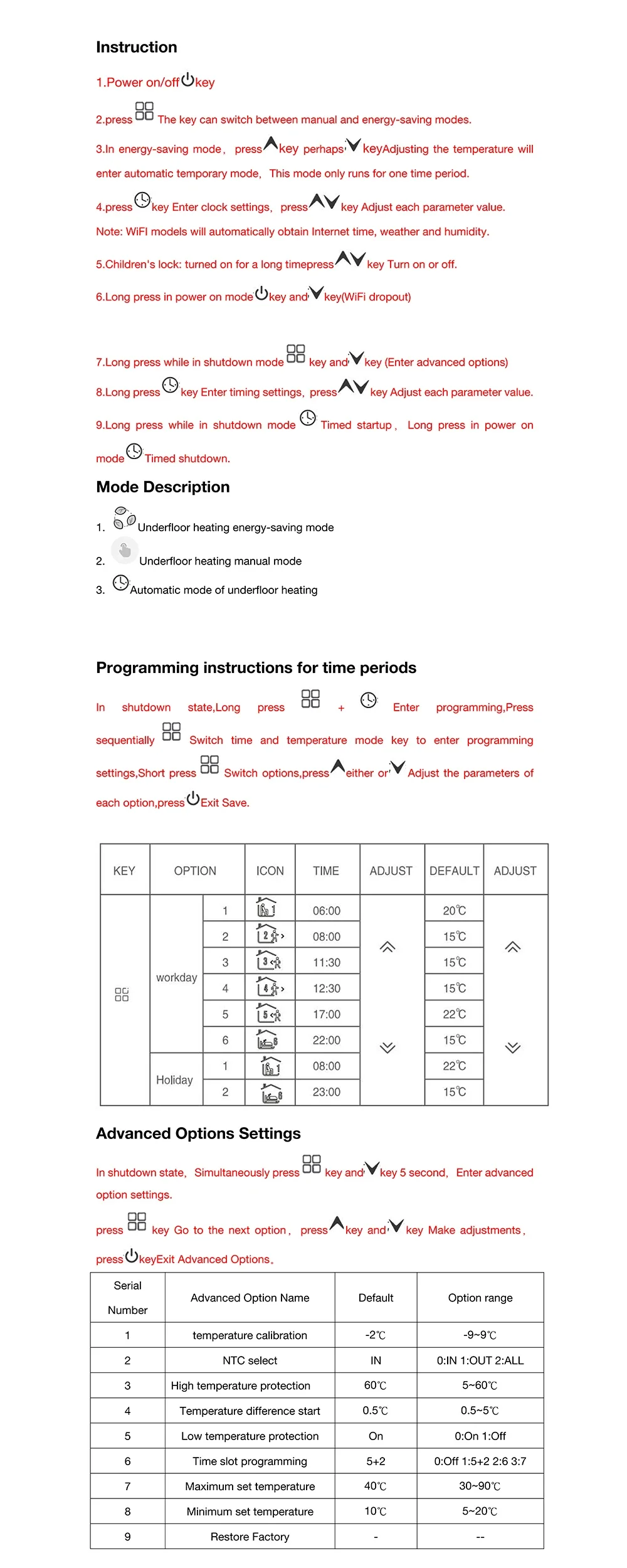 6. Temperature setting: 5-60 ℃