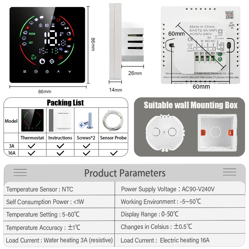 1*Sensor probe(only 16A electric floor heating include sensor cable)