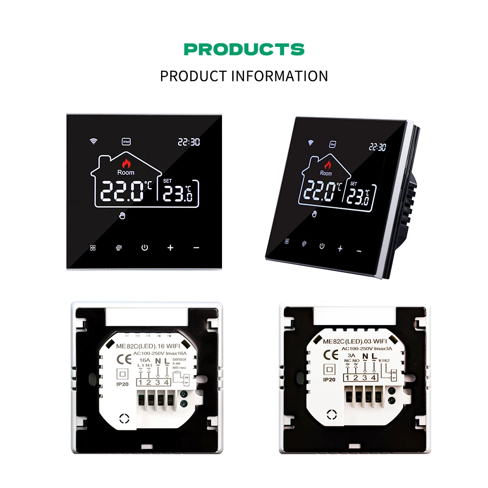 1.ME82C.16 /ME81LED -16A -01 is used control Heating Cable/Heating Mat/Heating Flim etc. electric floor/underfloor heating system.