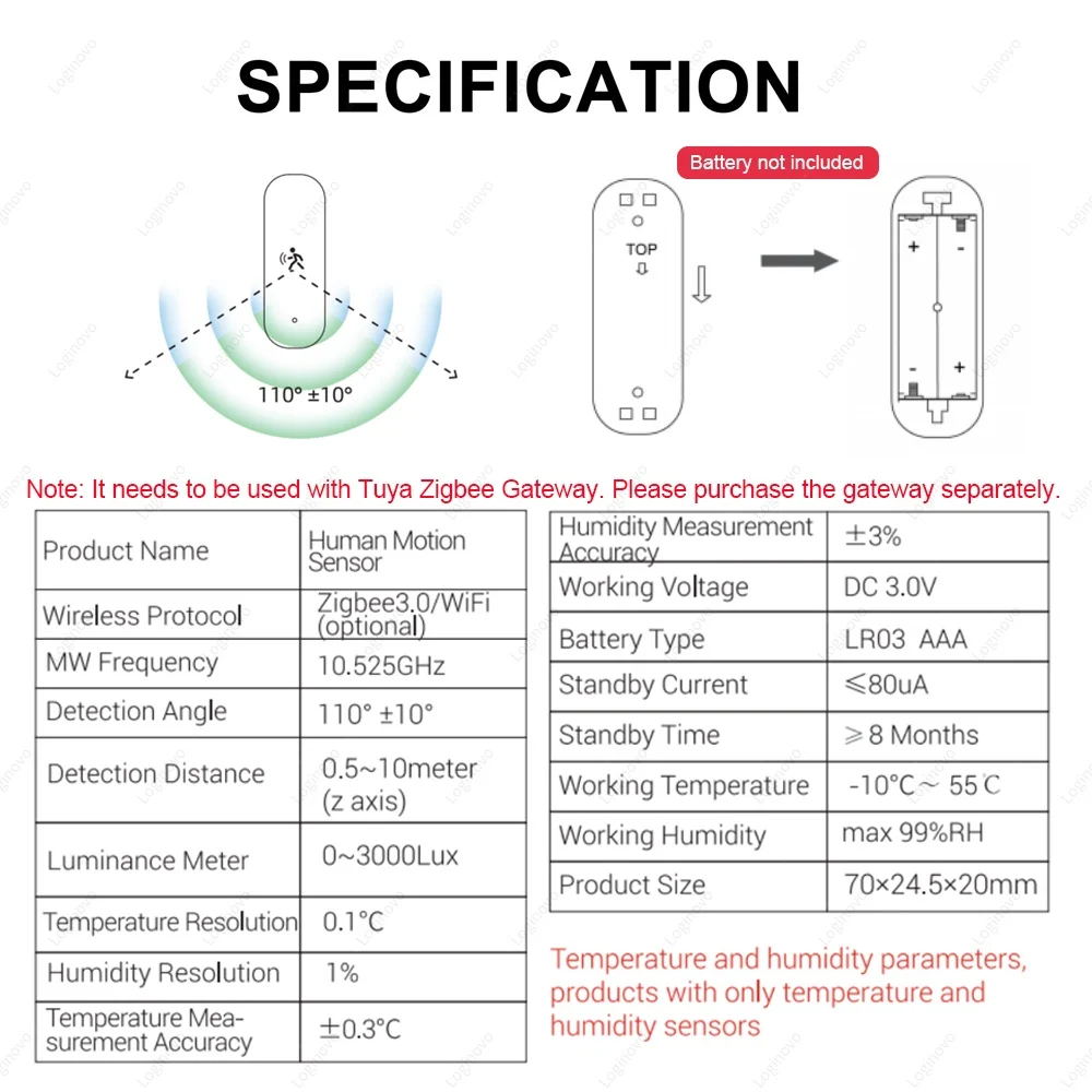 Note: A Tuya Zigbee Gateway is required for this product to function (not included). Please ensure you have a compatible gateway, as other brands may not support our sensors. Additionally, batteries are not included with the device.