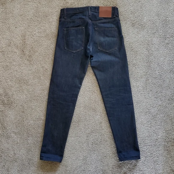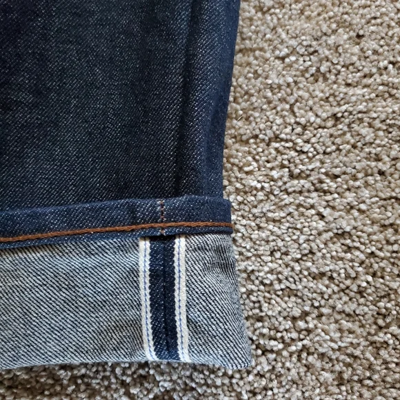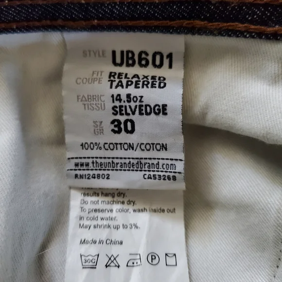 20 wears. unwashed.From the product page:The UB201 is our tapered fit: roomy seat and thigh tapering to a narrow leg opening cut and sewn from Sanforized raw indigo selvedge denim.The midweight 14.5oz cloth is heavier than most denim, but we think it’s the perfect weight for year-round wear. Rope-dyed indigo exterior warp yarns and white interior weft yarns create a quintessential raw denim fabric. Signature blue ear selvedge ID. Unbranded leather patch. Union Special chain-stitched hems. Hidden back pocket rivets. Copper tin button fly.Measurements:waist: 16"front rise: 12"back rise: 15.5"thigh: 12"knee: 9"leg opening: 6.25"inseam: 32"